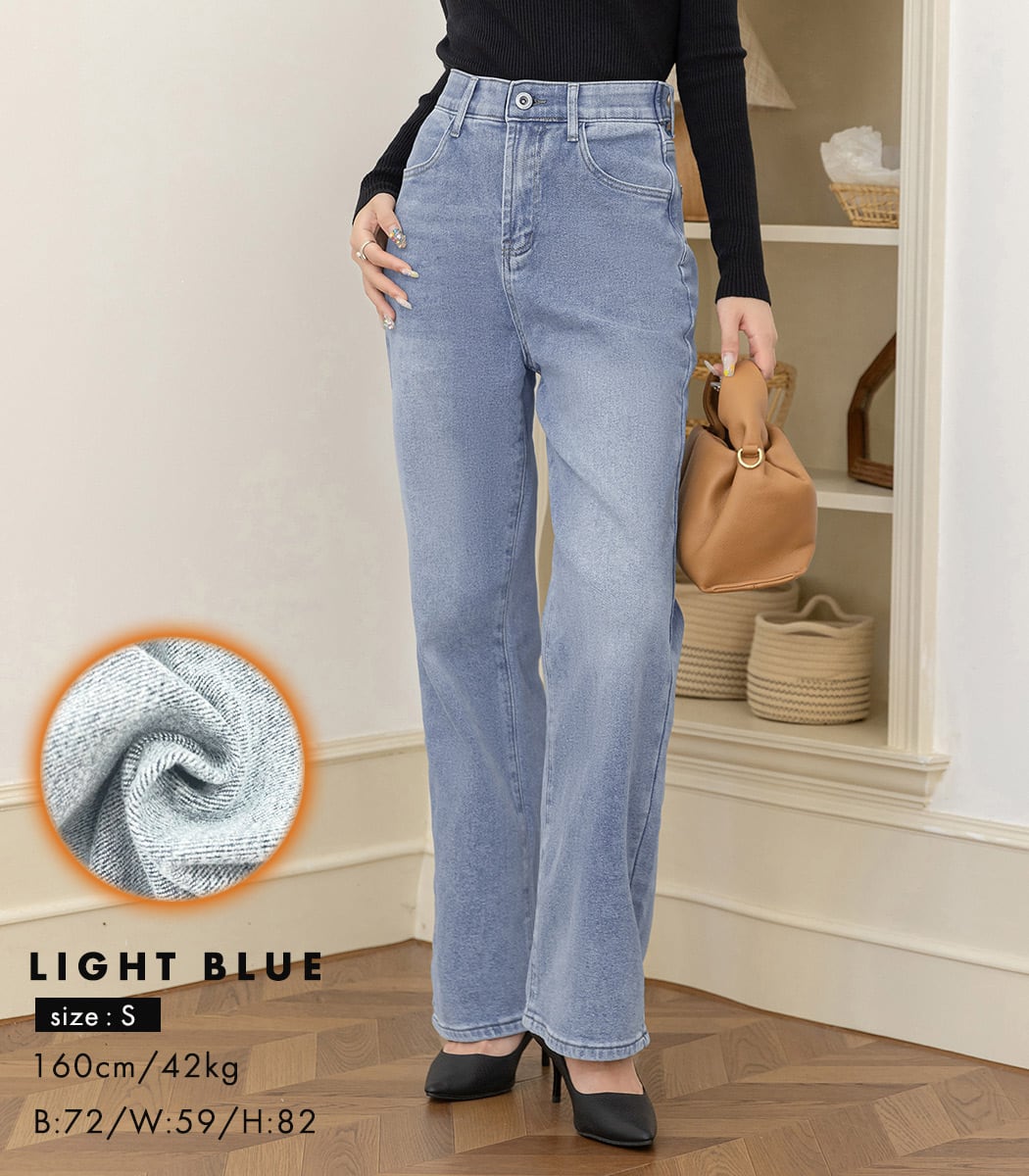 【宅配便】「着太りの心配なし」裏微起毛 デニム パンツ ストレート レディース/pants661
