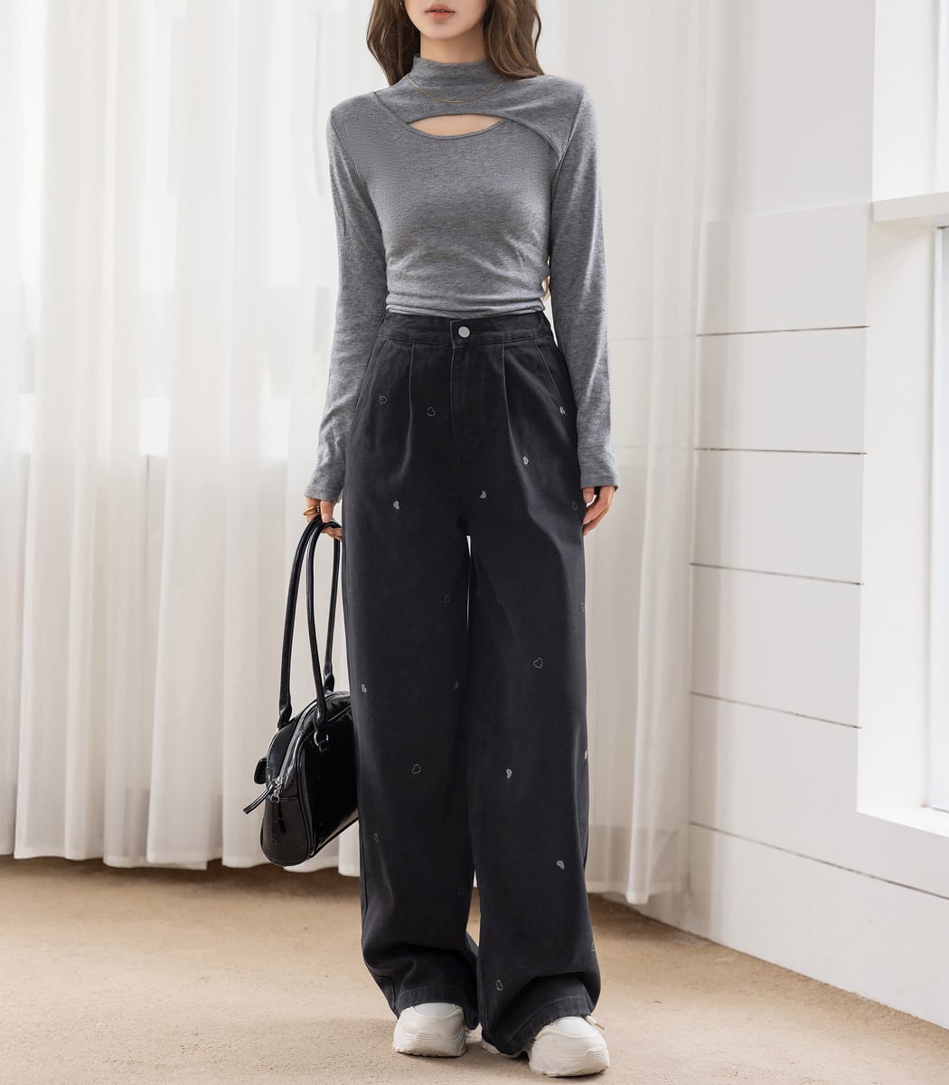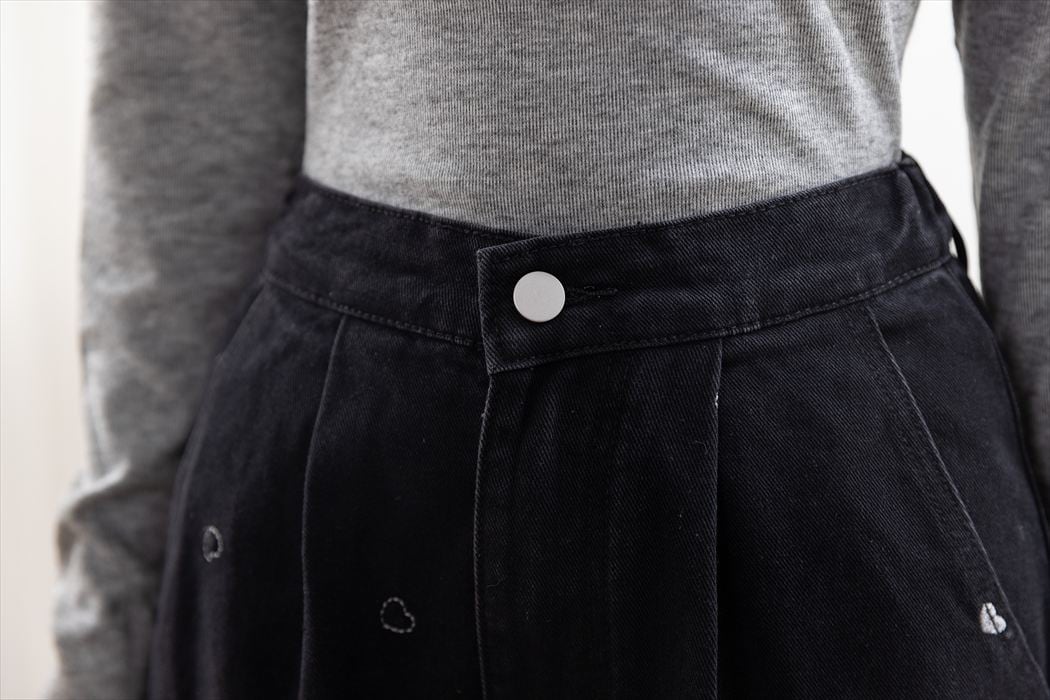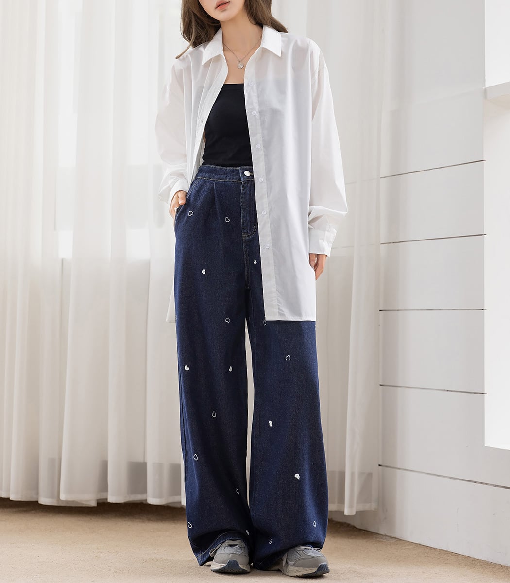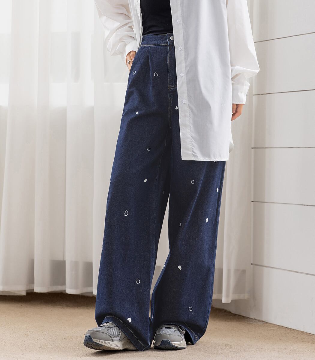 【宅配便】「ハート刺繍で主役級」デニム パンツ ワイド ストレート タック/pants664