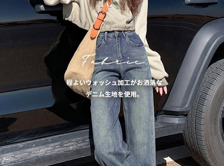 程よいウォッシュ加工がお洒落なデニム生地を使用。