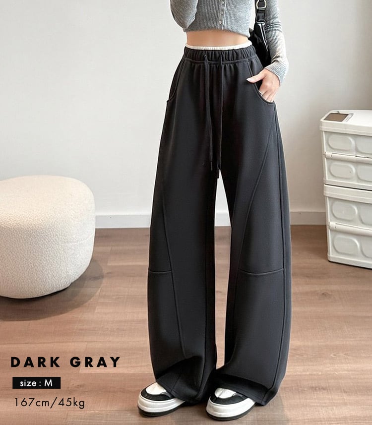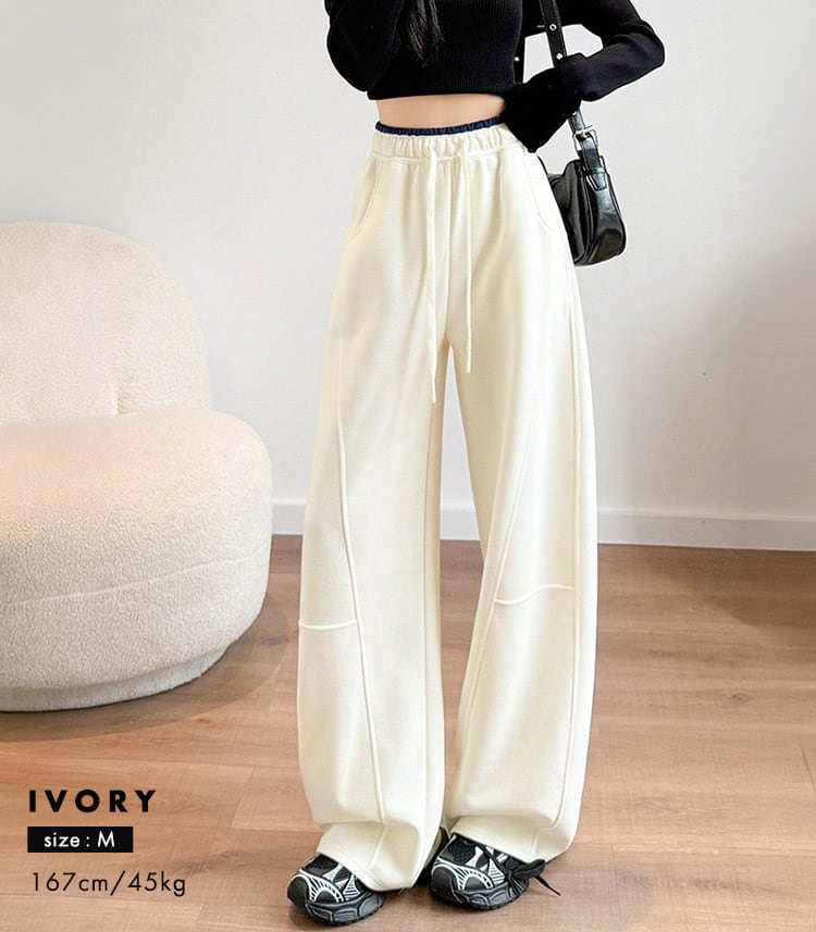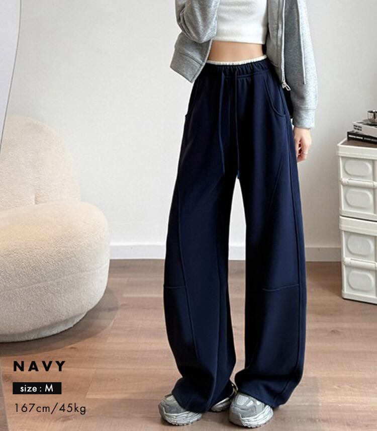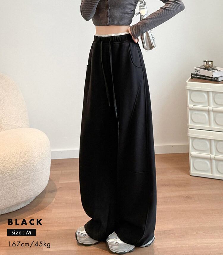 【宅配便】 「ダボ感回避のライン」ワイド パンツ スウェット レディース/pants687