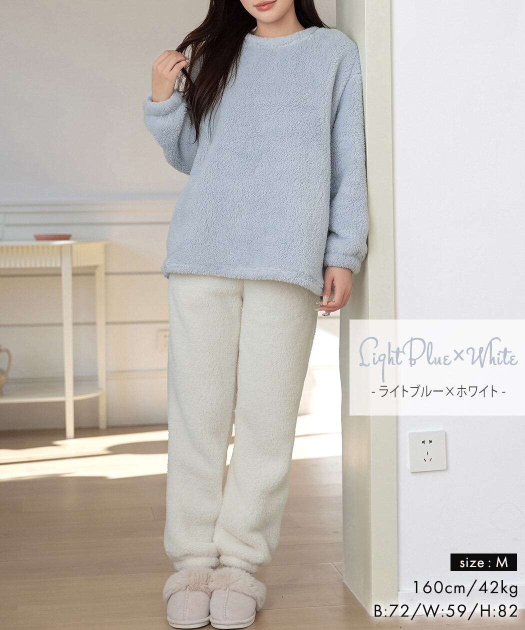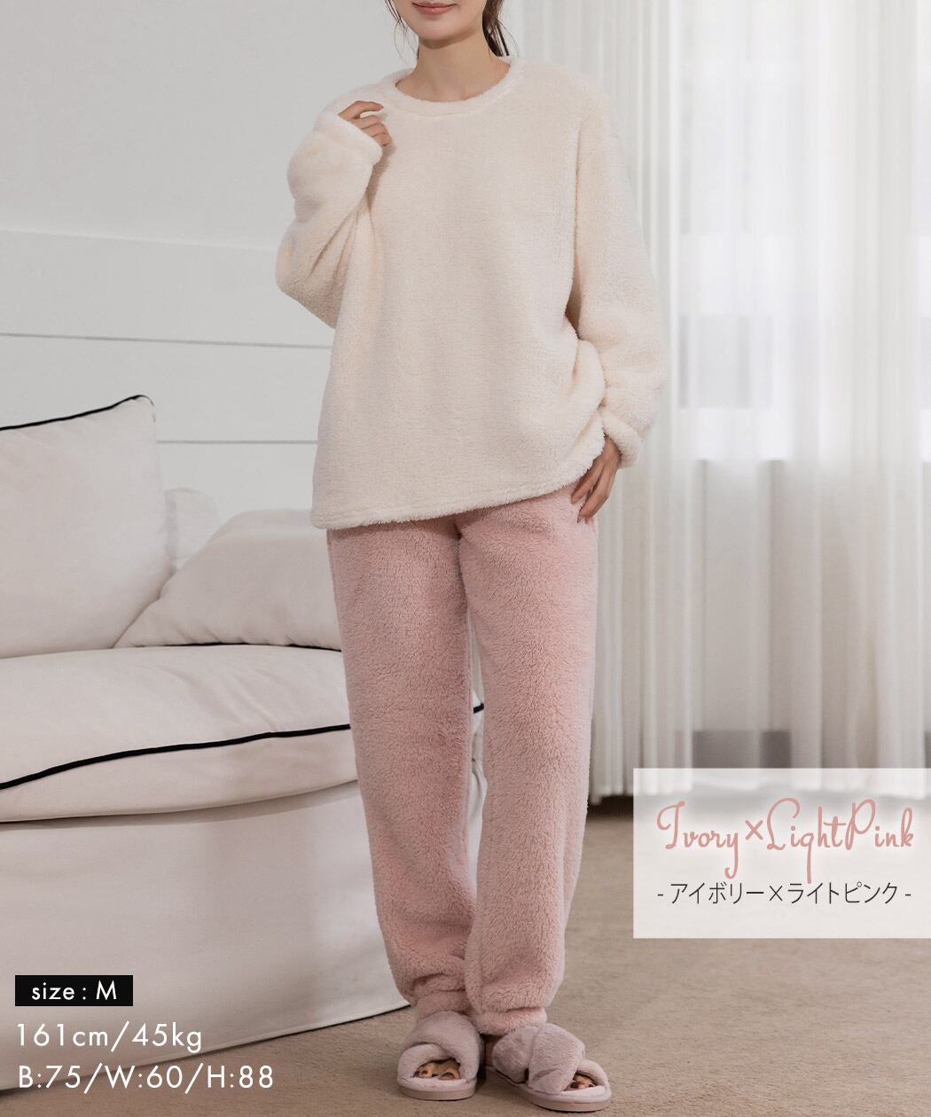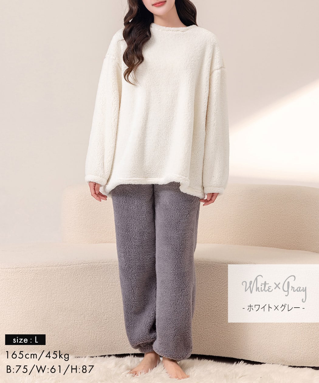 ふわふわで手触りのいいボア生地のルームウェア