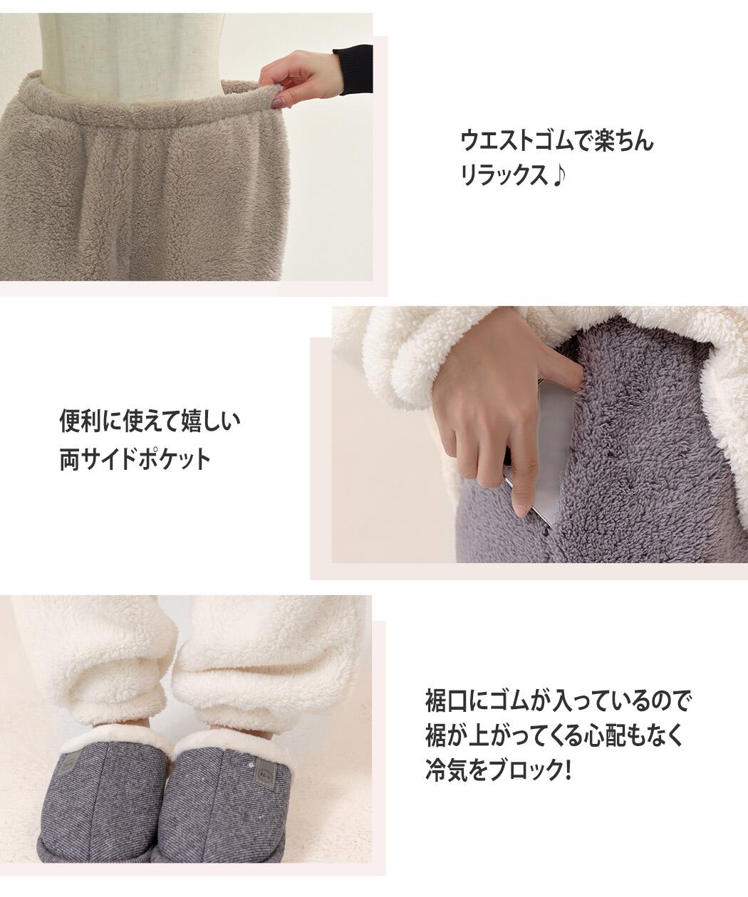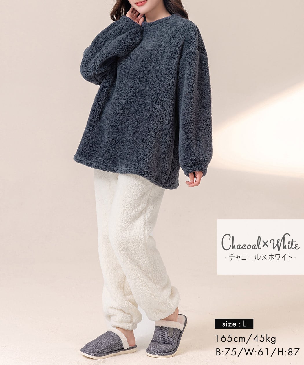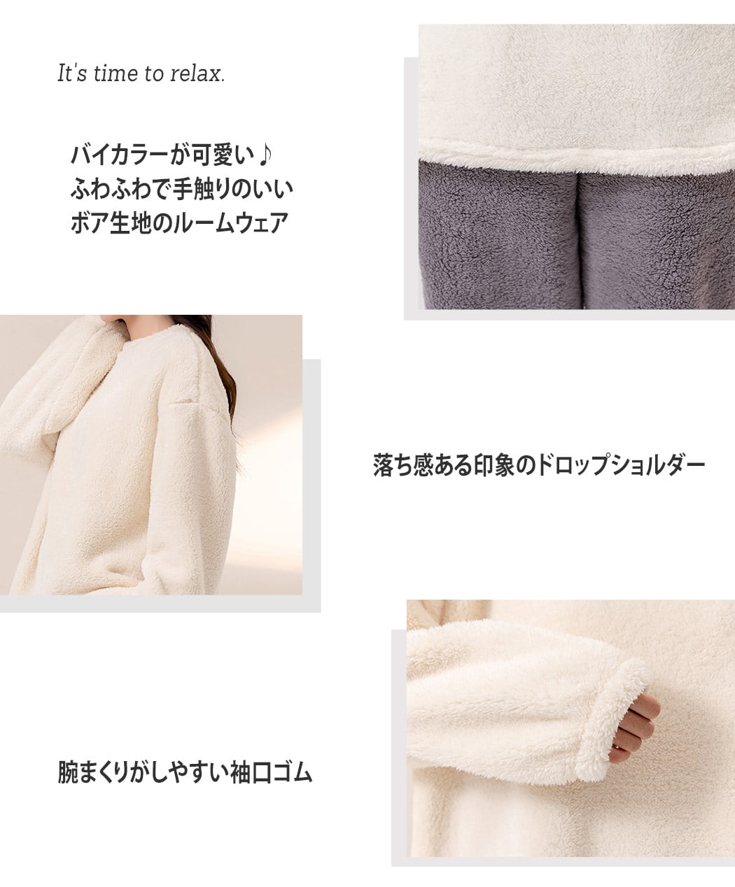 ふわふわで手触りのいいボア生地のルームウェア