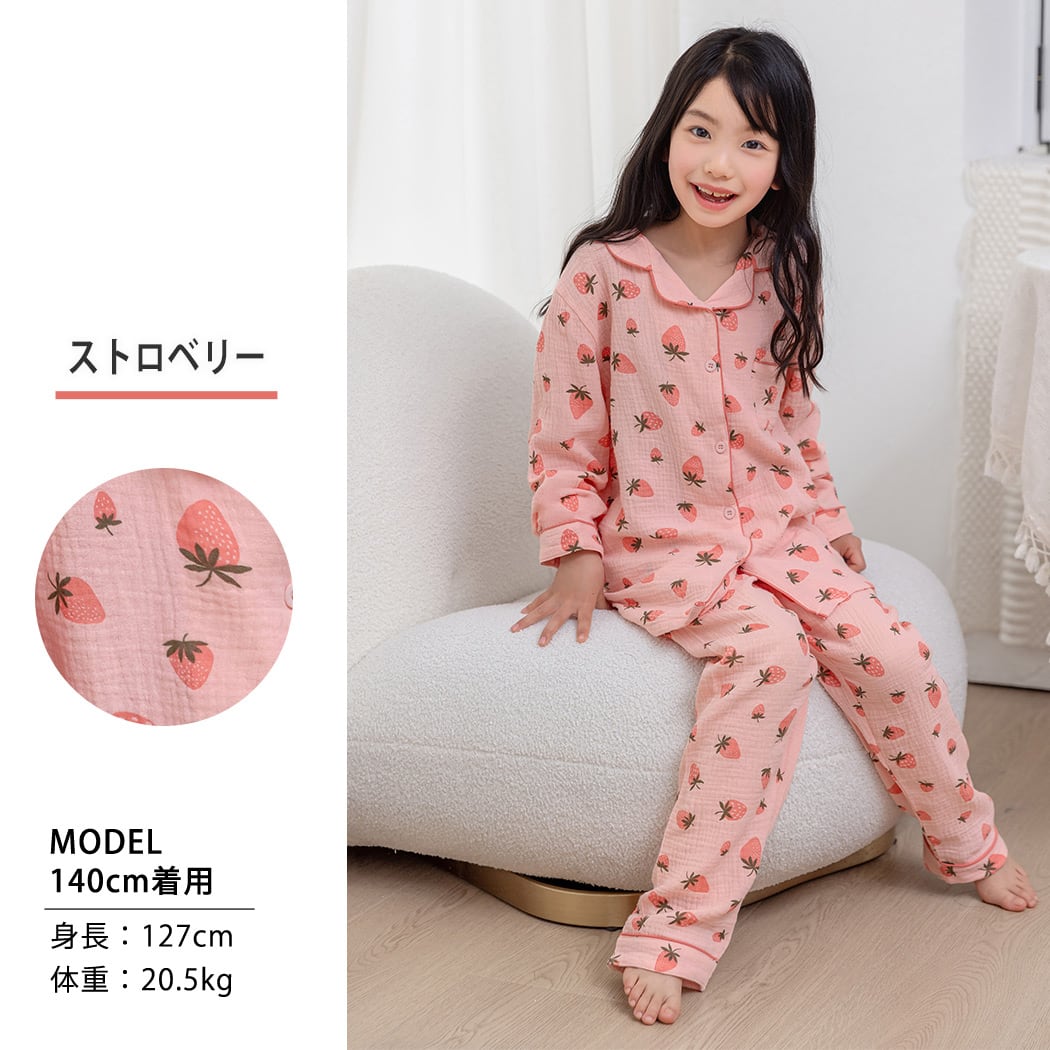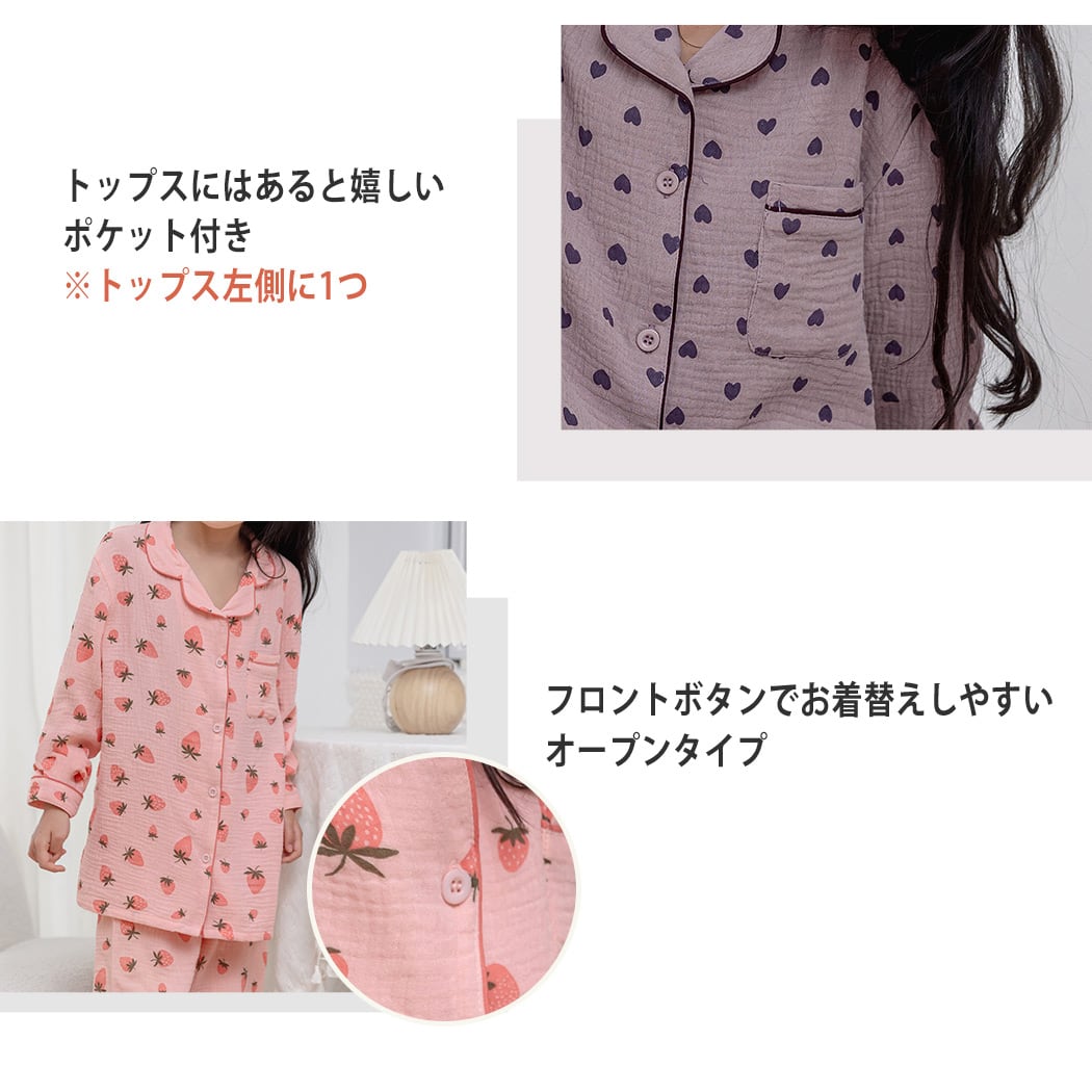 【宅配便】キッズ パジャマ 長袖 前開き 女の子/roomwear232