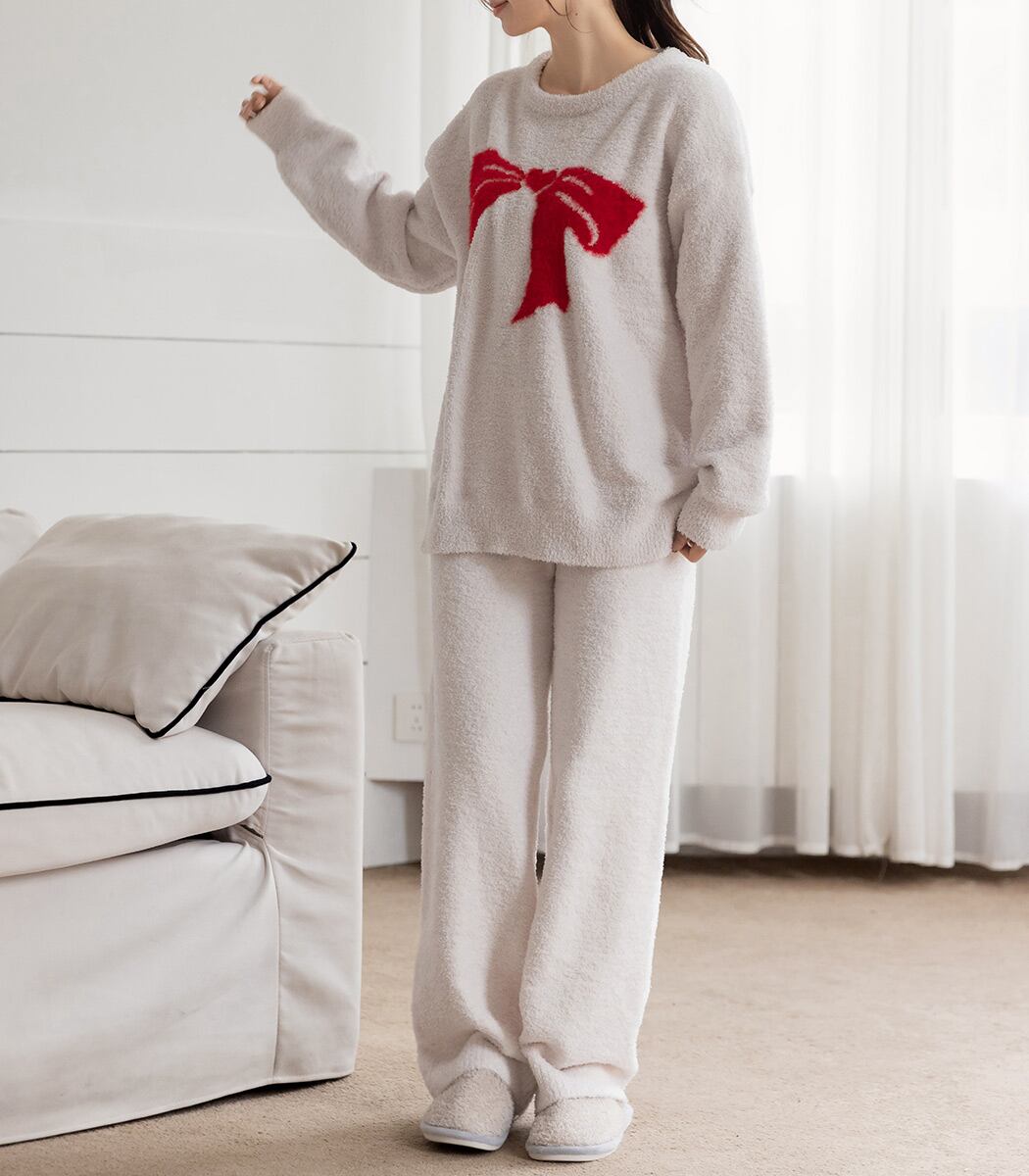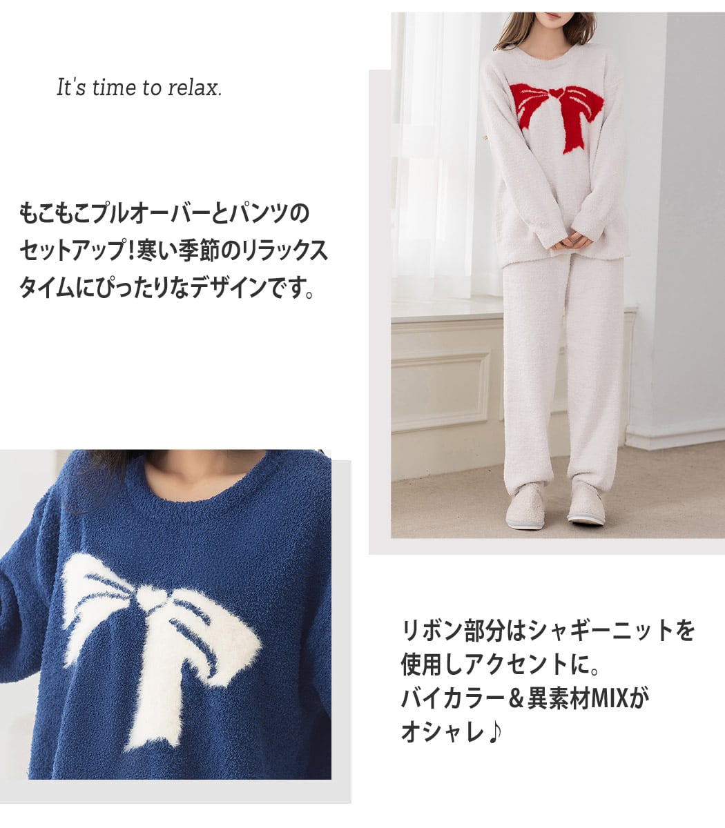 【宅配便】ルームウェア レディース もこもこ 長袖 リボン/roomwear247