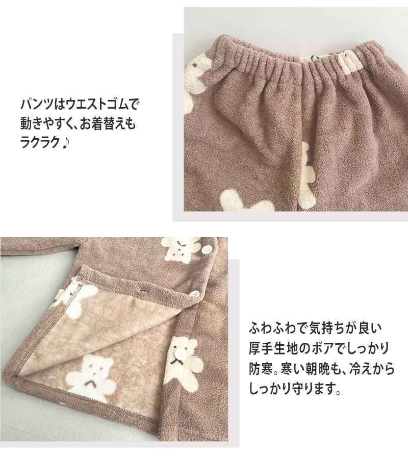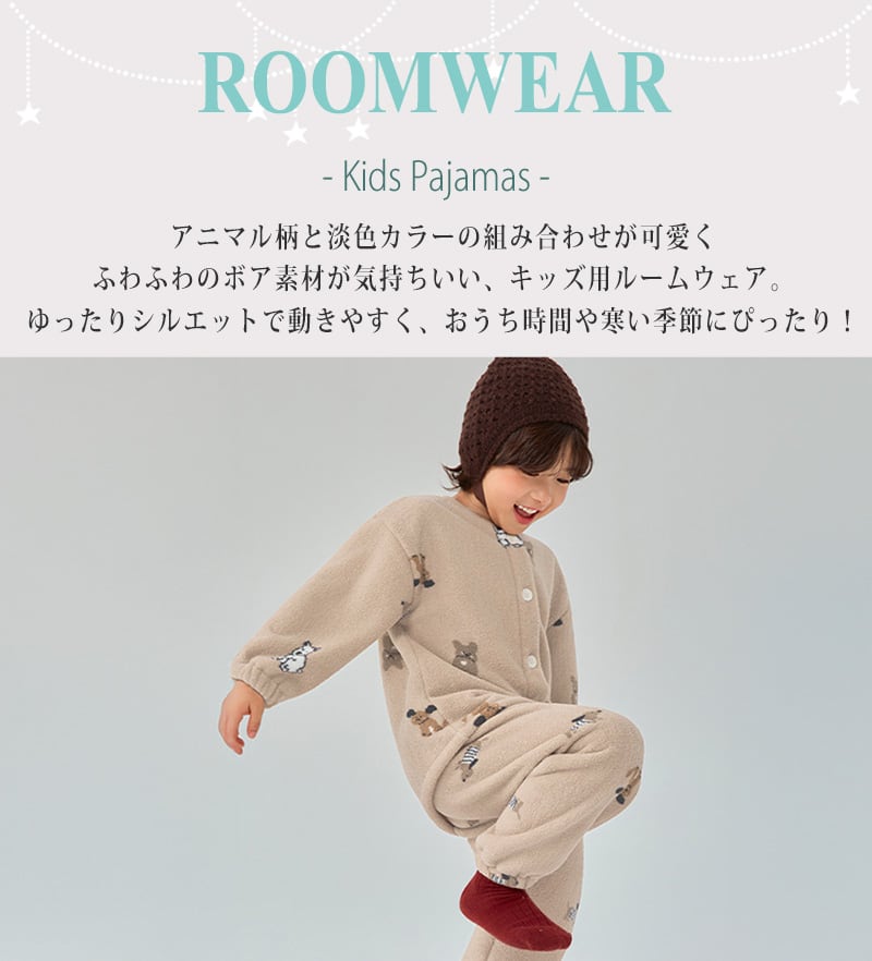 ふわふわのボア素材が気持ちいい、キッズ用ルームウェア。