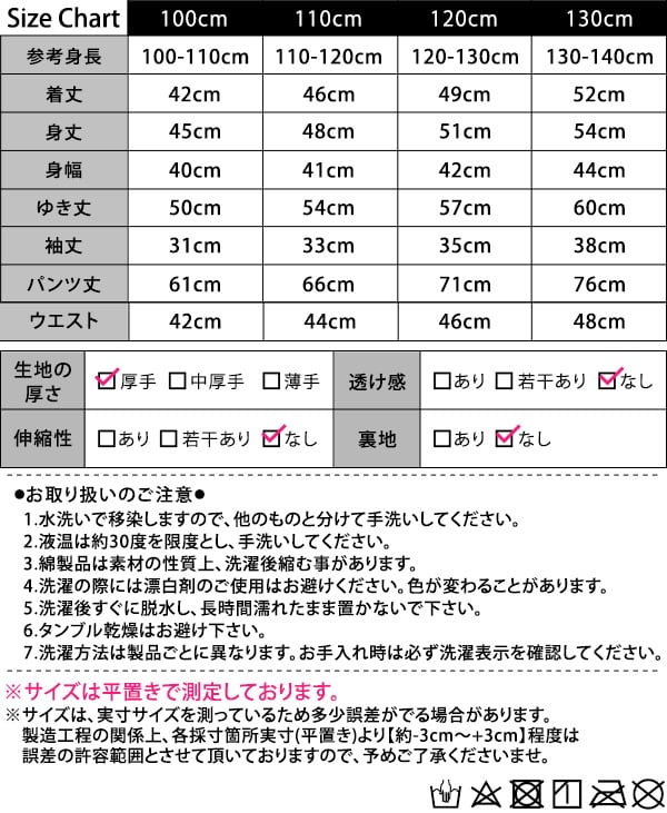 3.綿製品は素材の性質上、洗濯後縮む事があります。