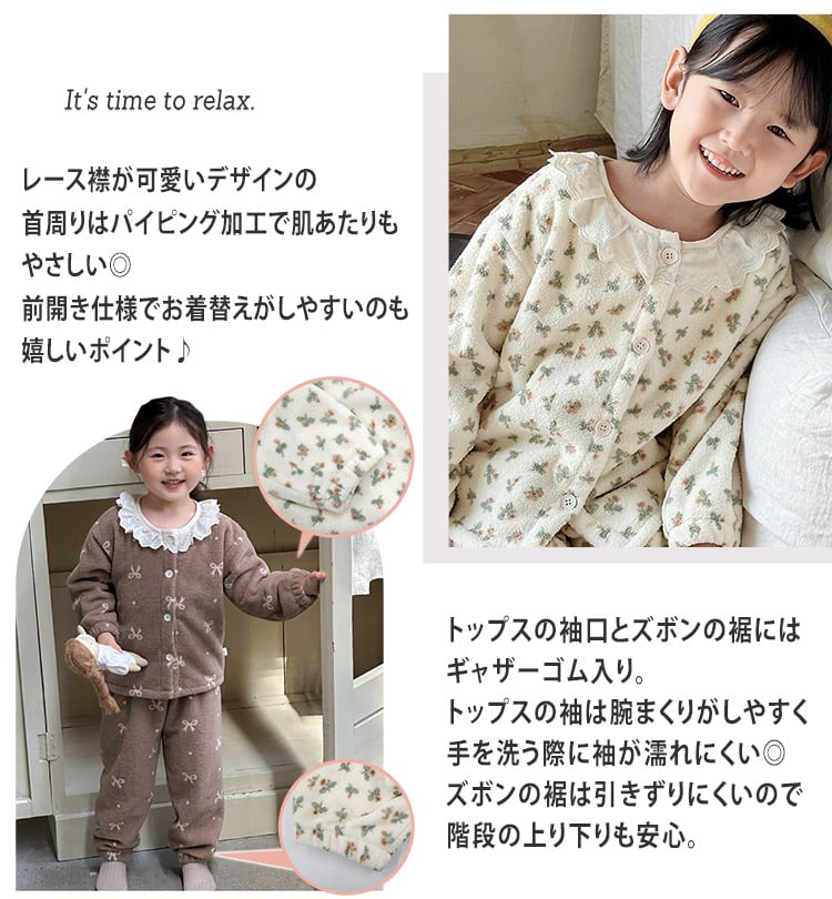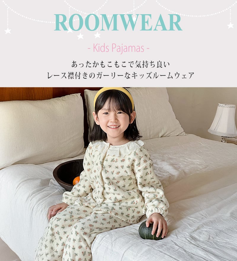 レース襟付きのガーリーなキッズルームウェア