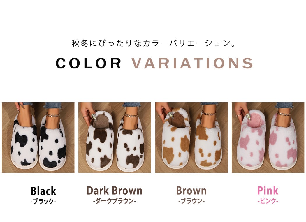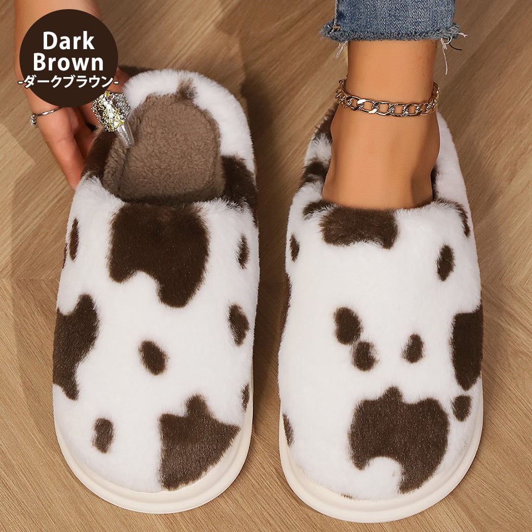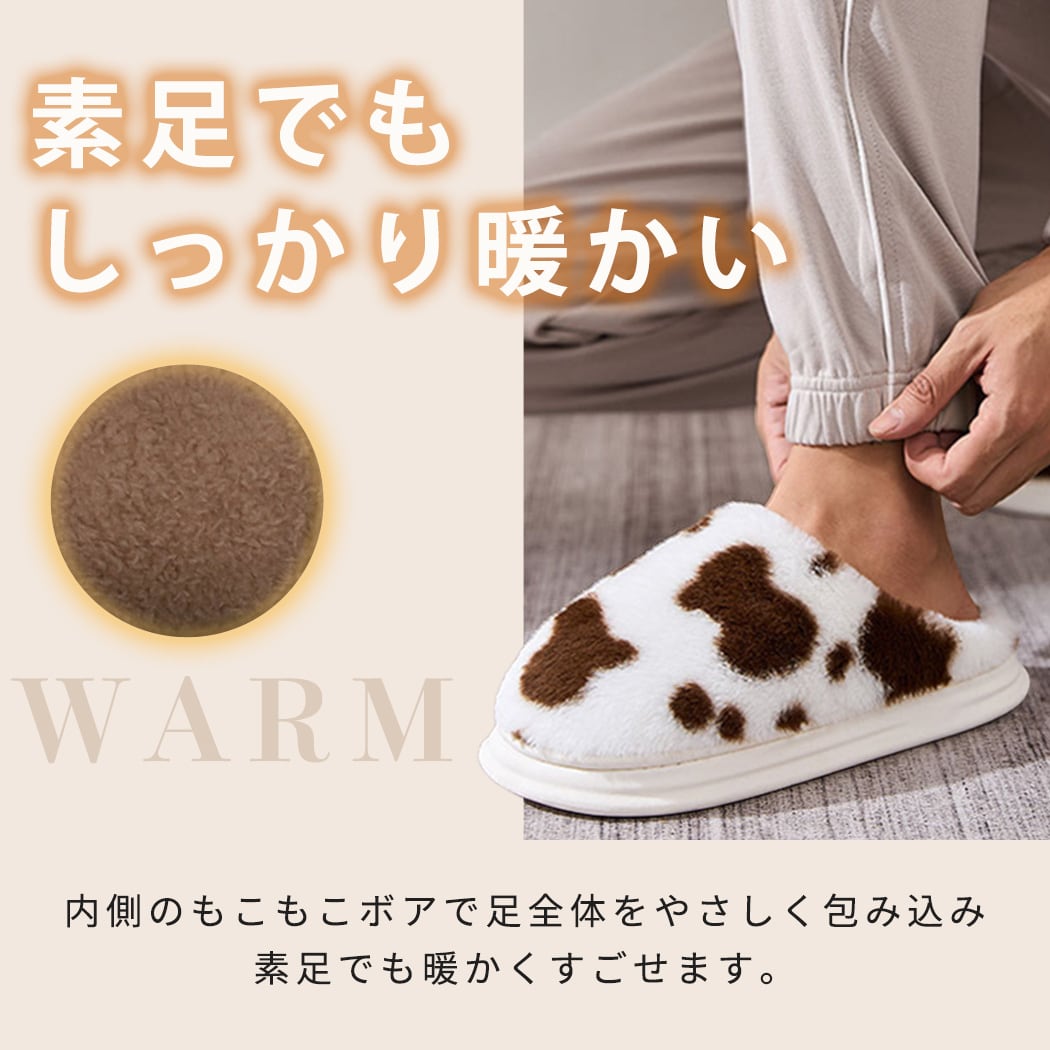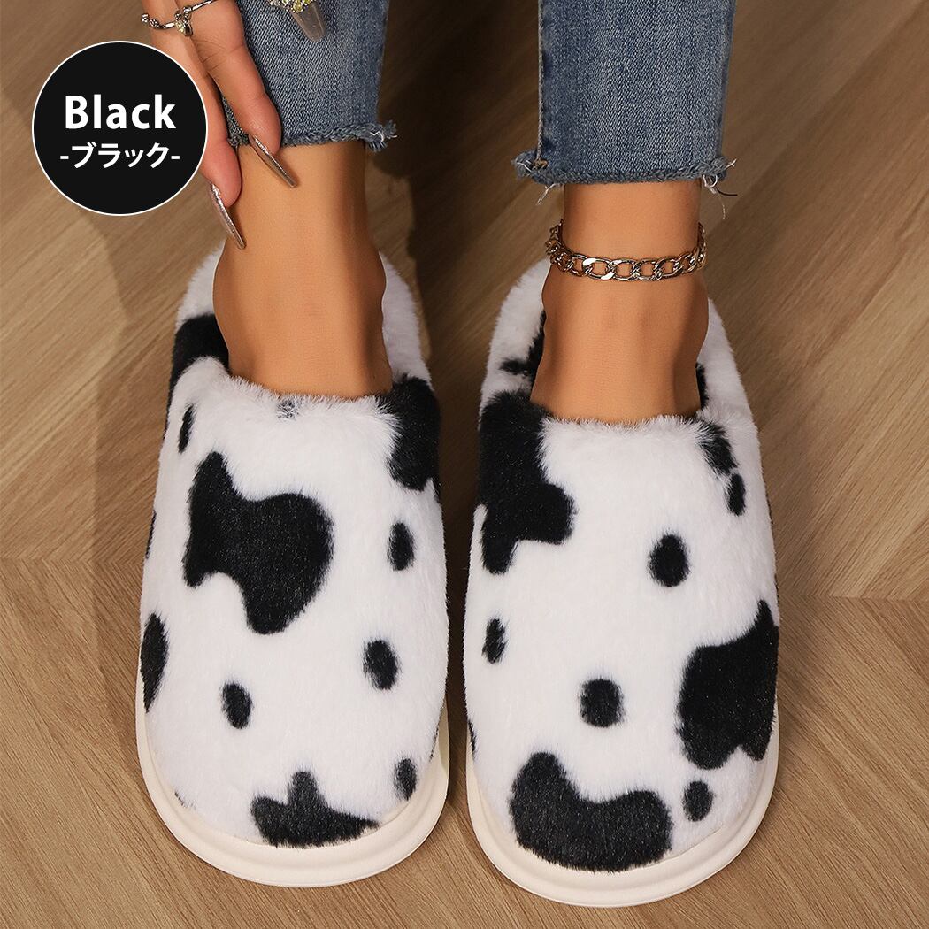【宅配便】スリッパ 起毛 牛柄 フェイクファー 内側ボア/sandal180