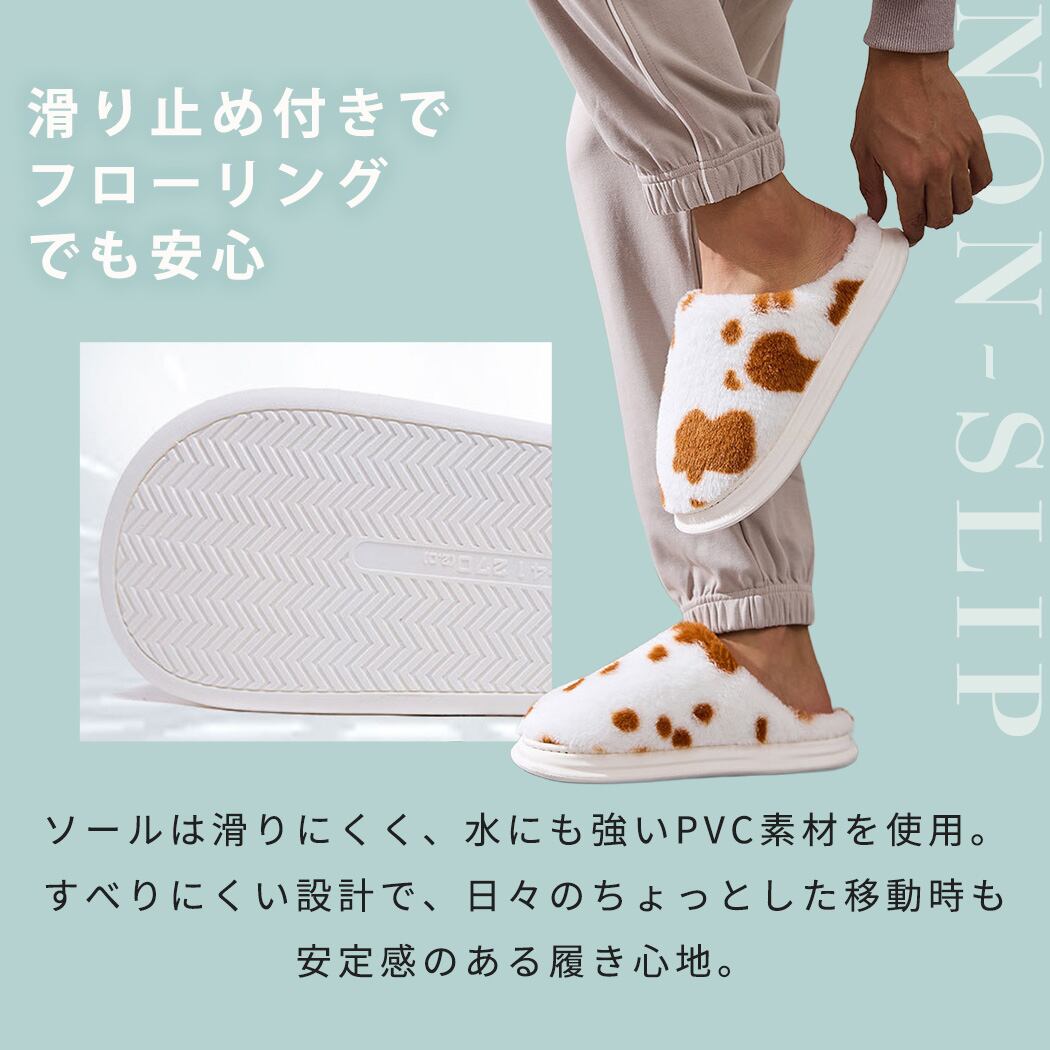 レディース メンズ ホルスタイン柄スリッパ