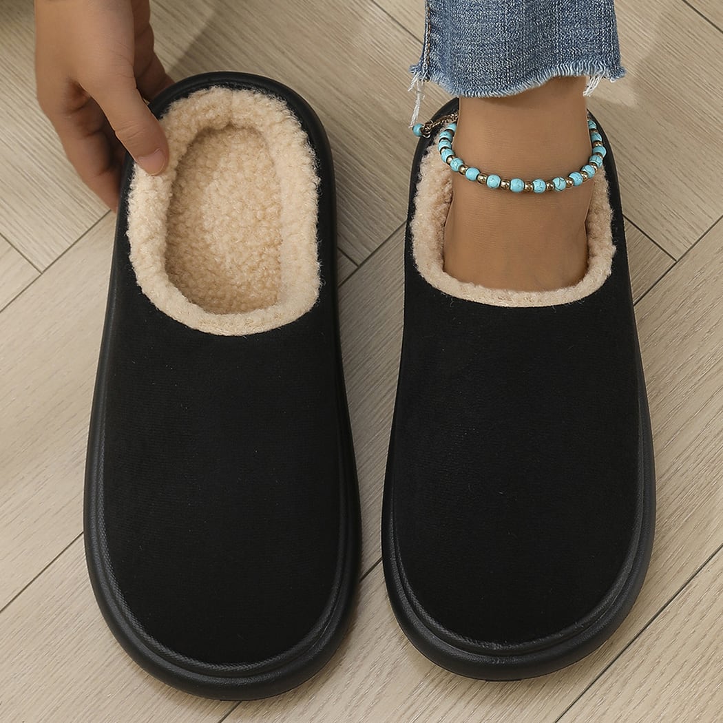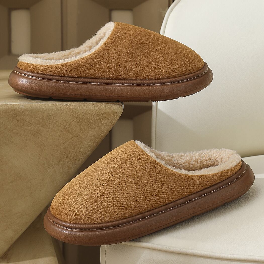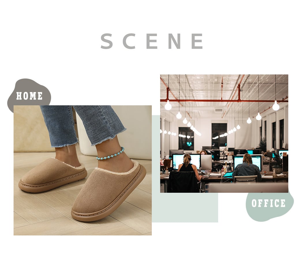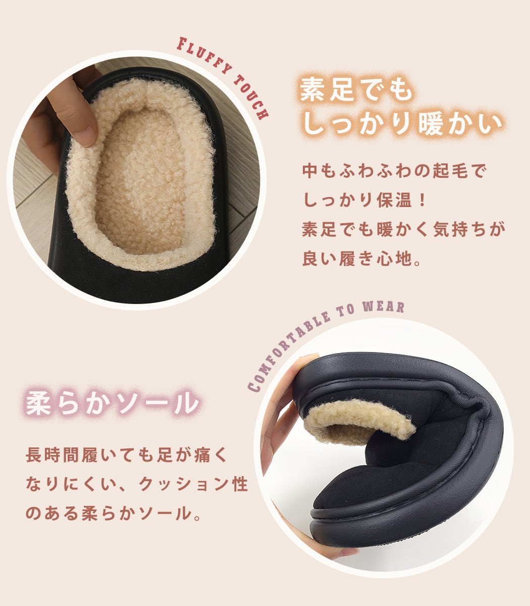 室内でもお洒落を楽しめるムートン風のスリッパ。