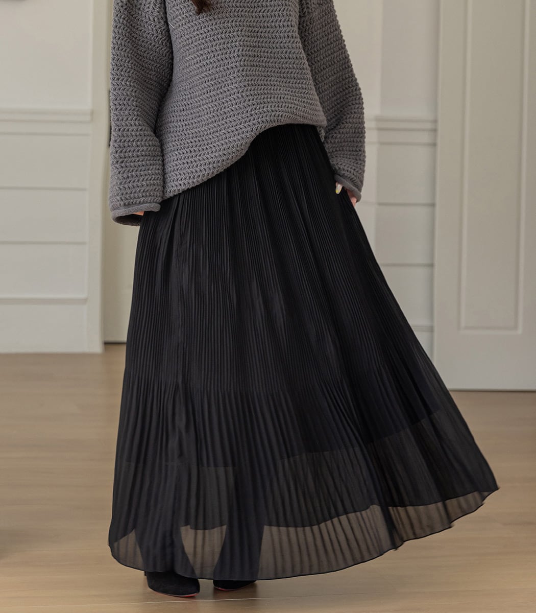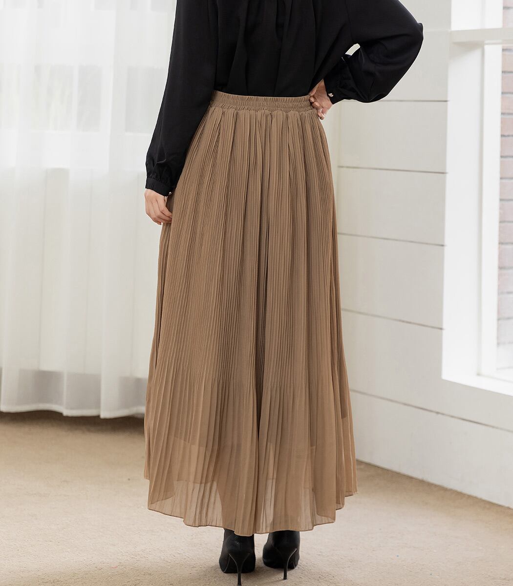 上部と裾でプリーツ幅が違う消しプリーツスカート