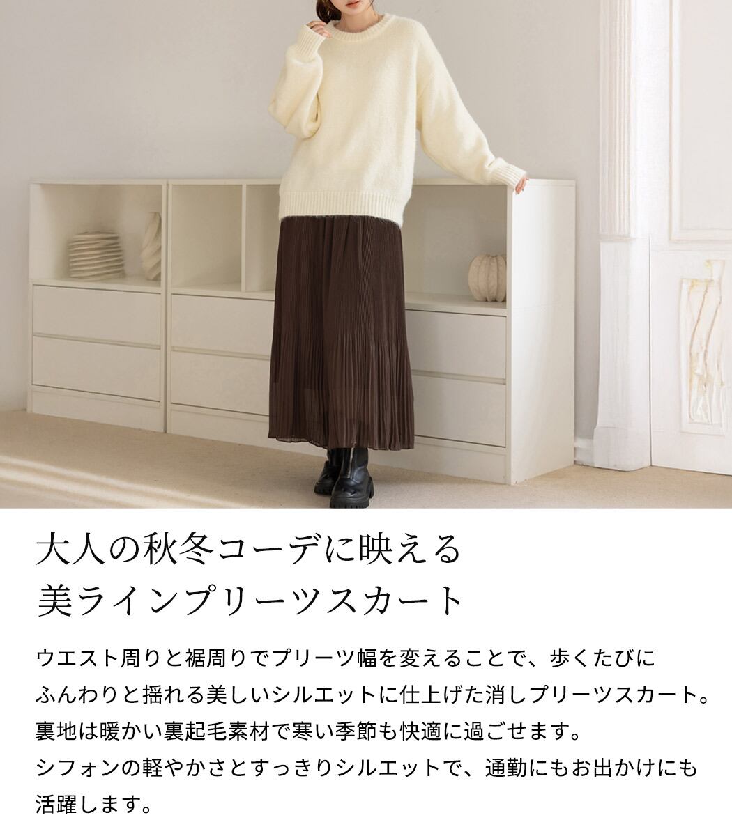 【宅配便】「薄手プリーツと裏起毛の融合」プリーツスカート 裏起毛 ロング レディース きれいめ/skirt074