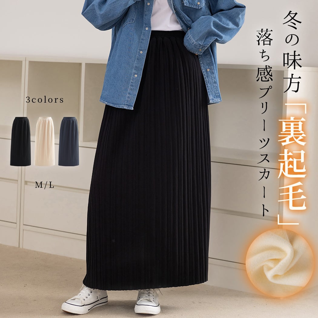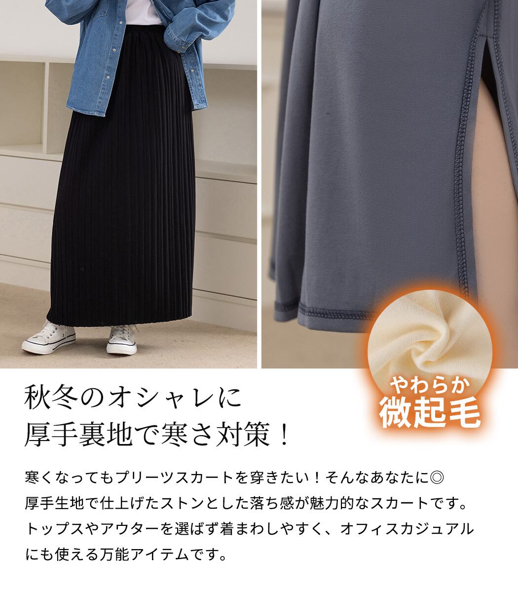 冬の味方「裏起毛」落ち感プリーツスカート