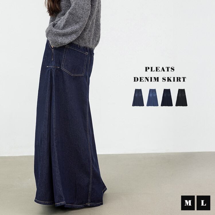 ベーシックなデニムスカートにサイドプリーツを加えた一枚。