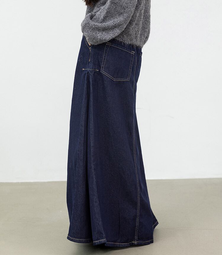 PLEATS DENIM SKIRT