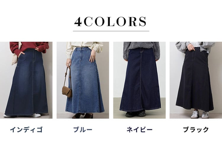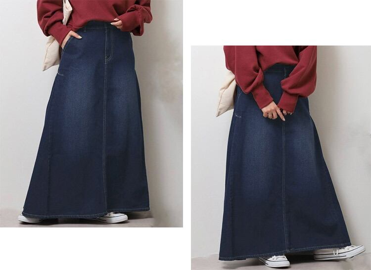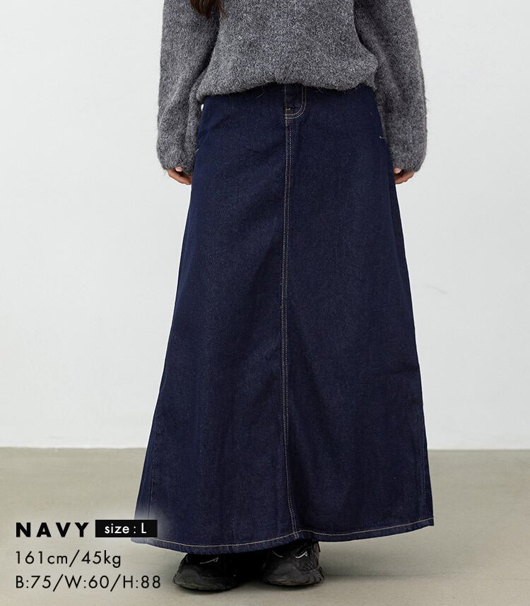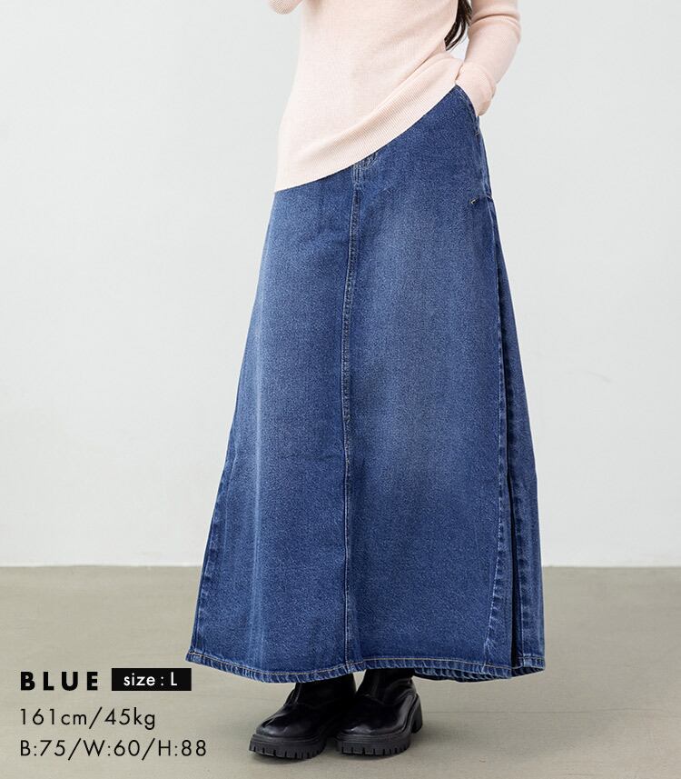 【宅配便】「動きで魅せる大人のデニム」デニム スカート ロング ゴム レディース/skirt086