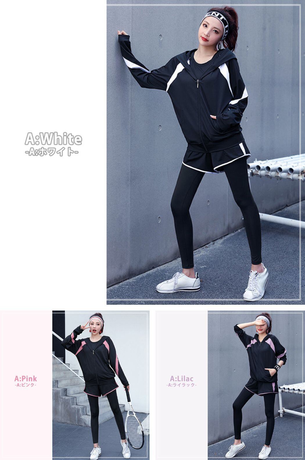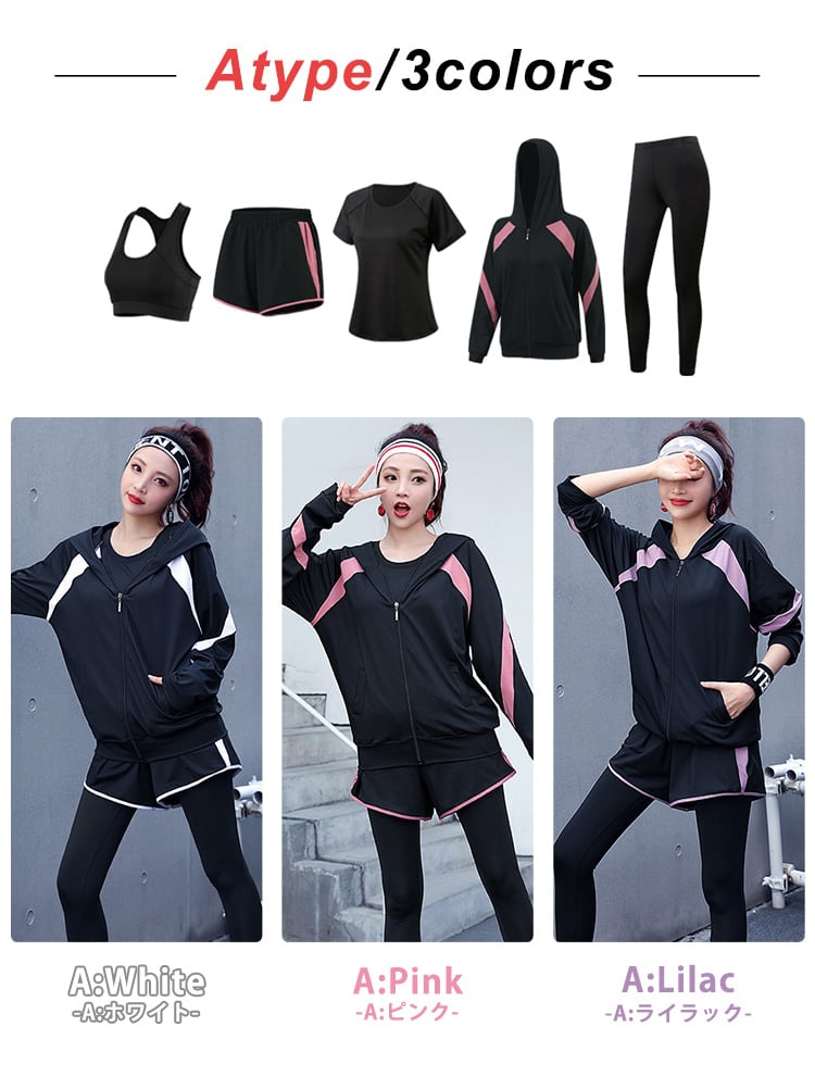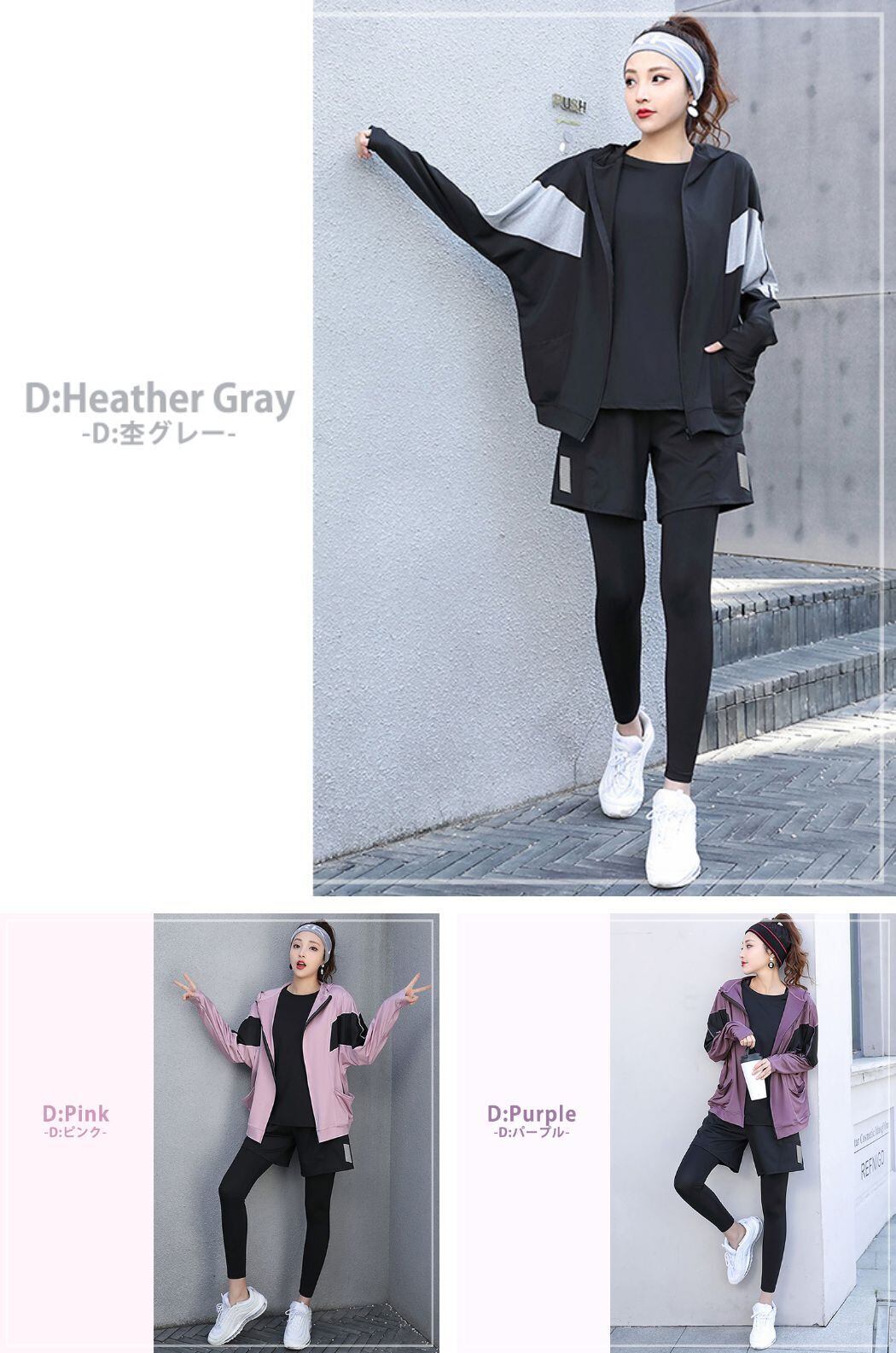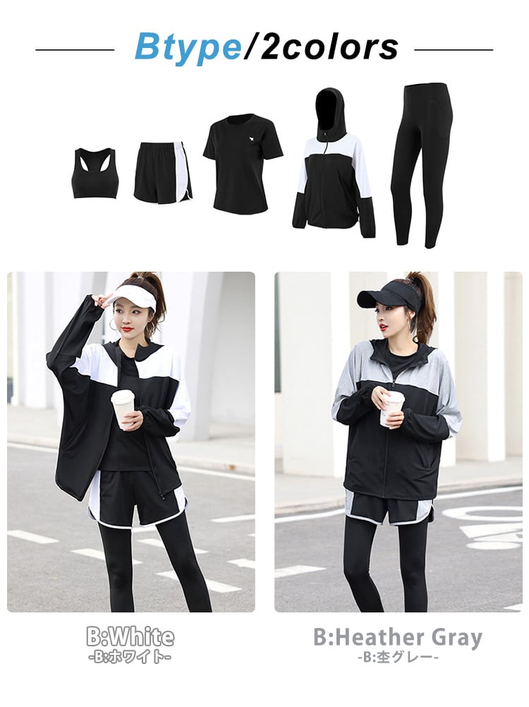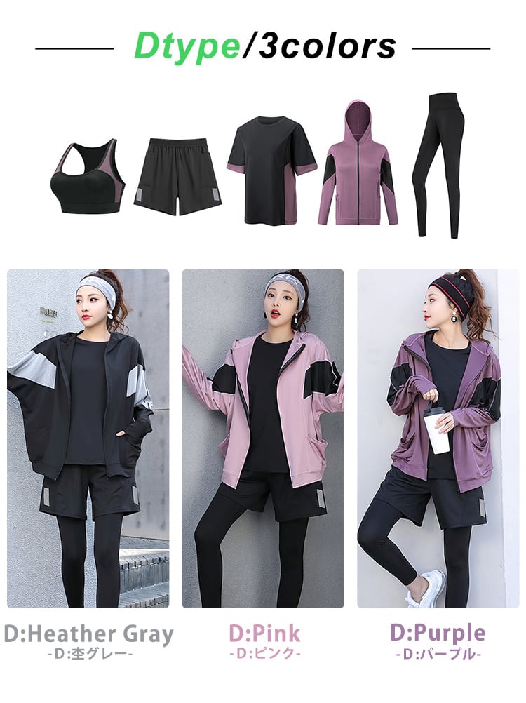 【宅配便】スポーツウェア レディース ヨガウェア 体型カバー 5点セット/fitness002