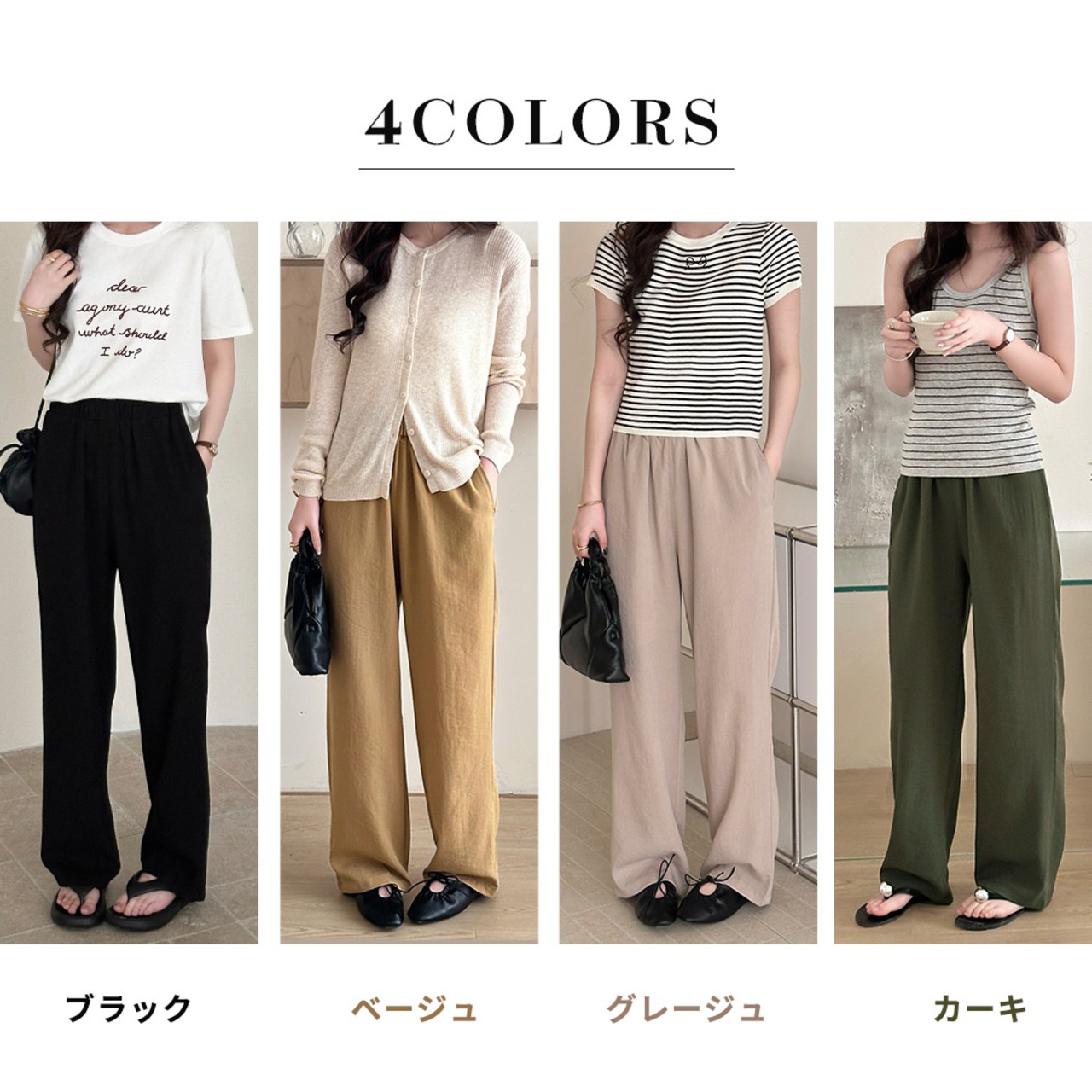 BLACK, BEIGE, GREIGE(1人目), KHAKI