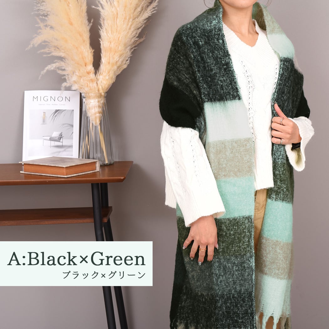 1.ストールを首にかけ、左右の長さが1:2になるようにします