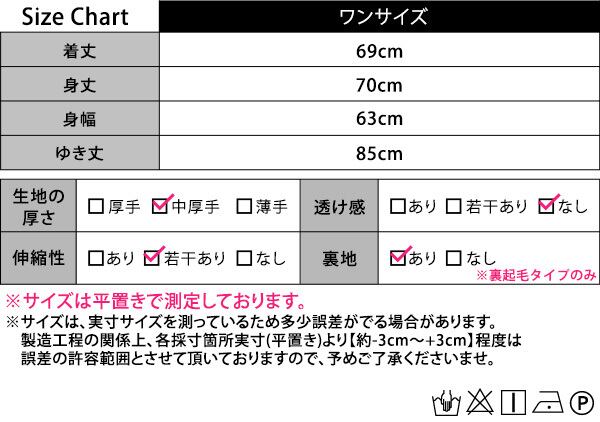 製造工程の関係上、各採寸箇所実寸(平置き)より【約-3cm〜+3cm】程度は