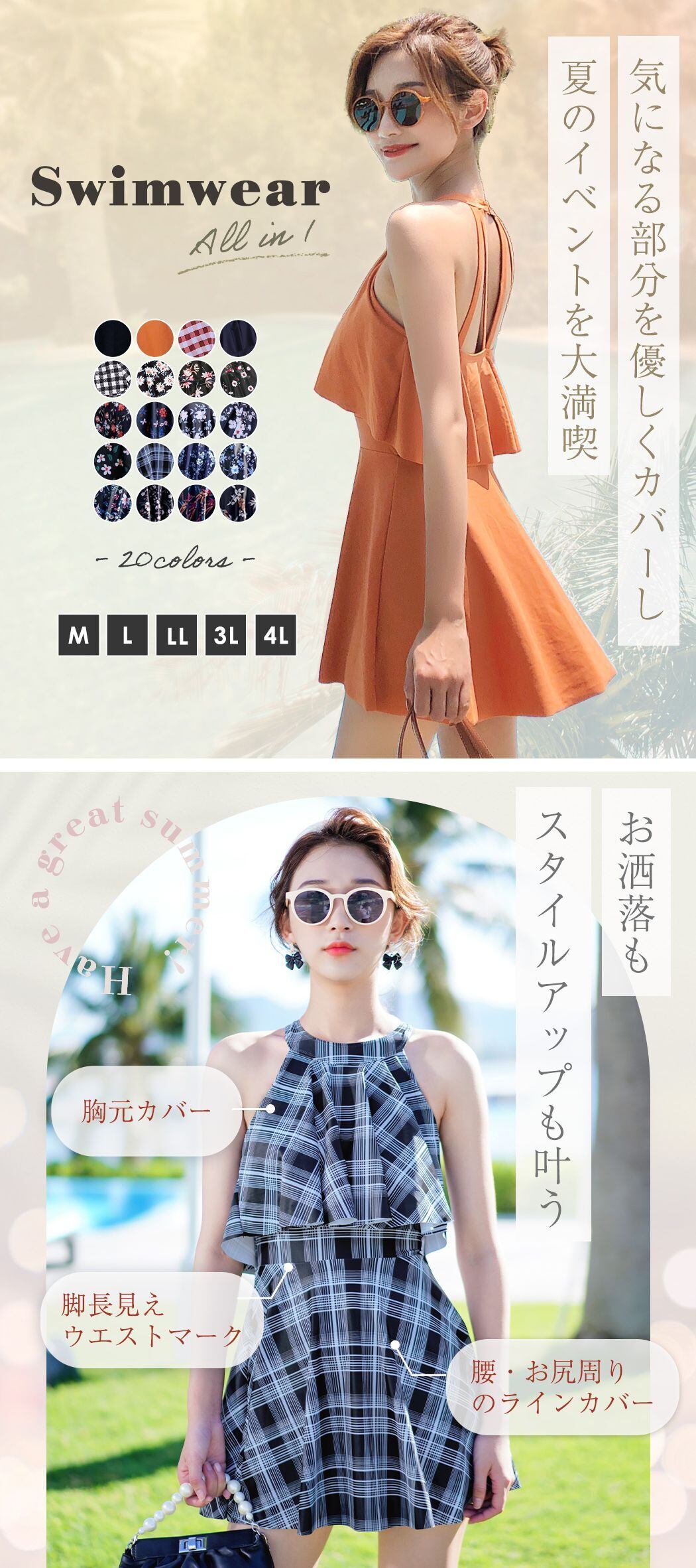 胸元カバー&ウエストの細見えも可愛いフレアデザイン