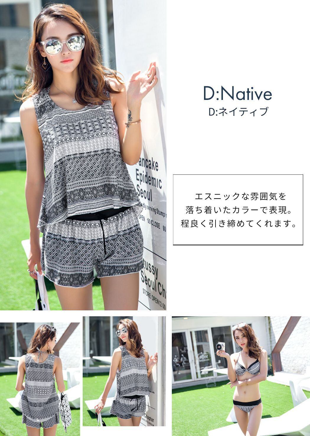 ビキニ+タンクトップ+ショートパンツ 4点セット