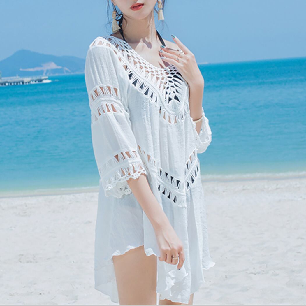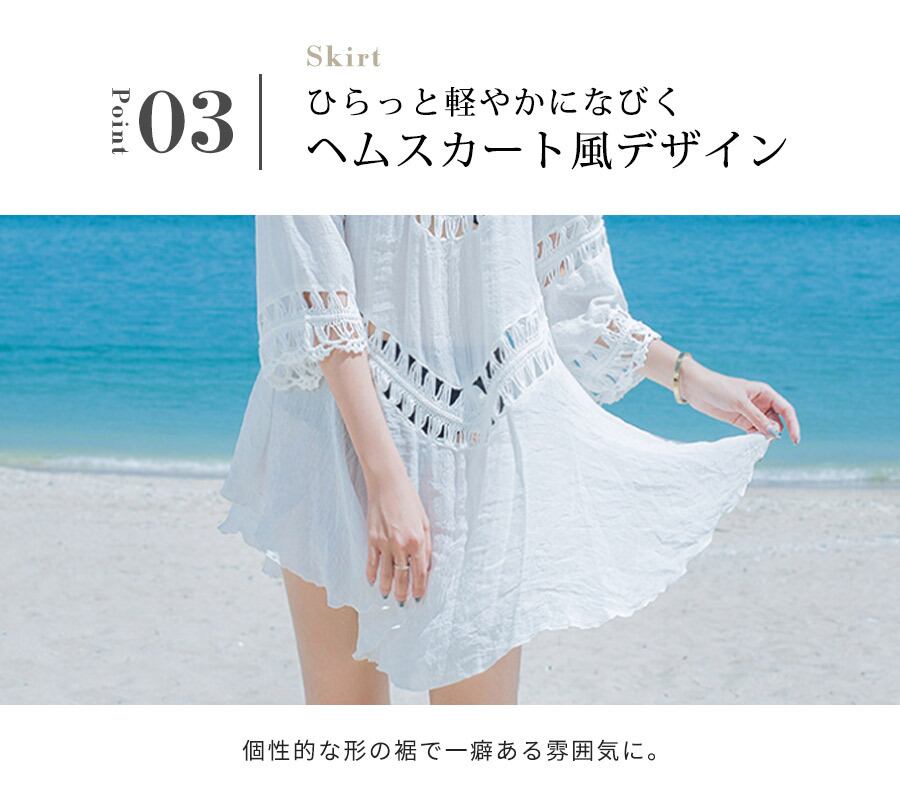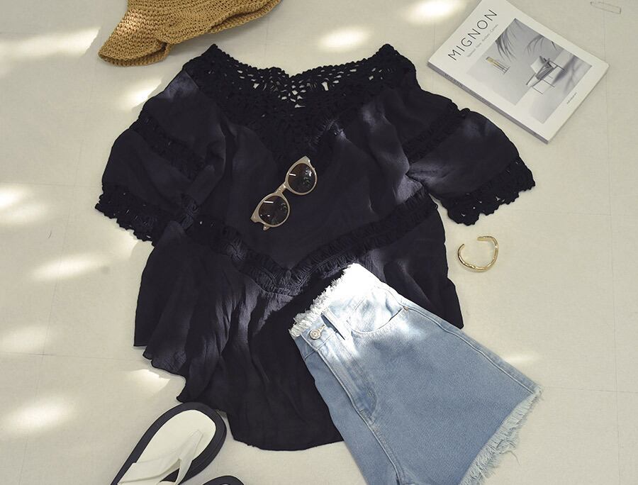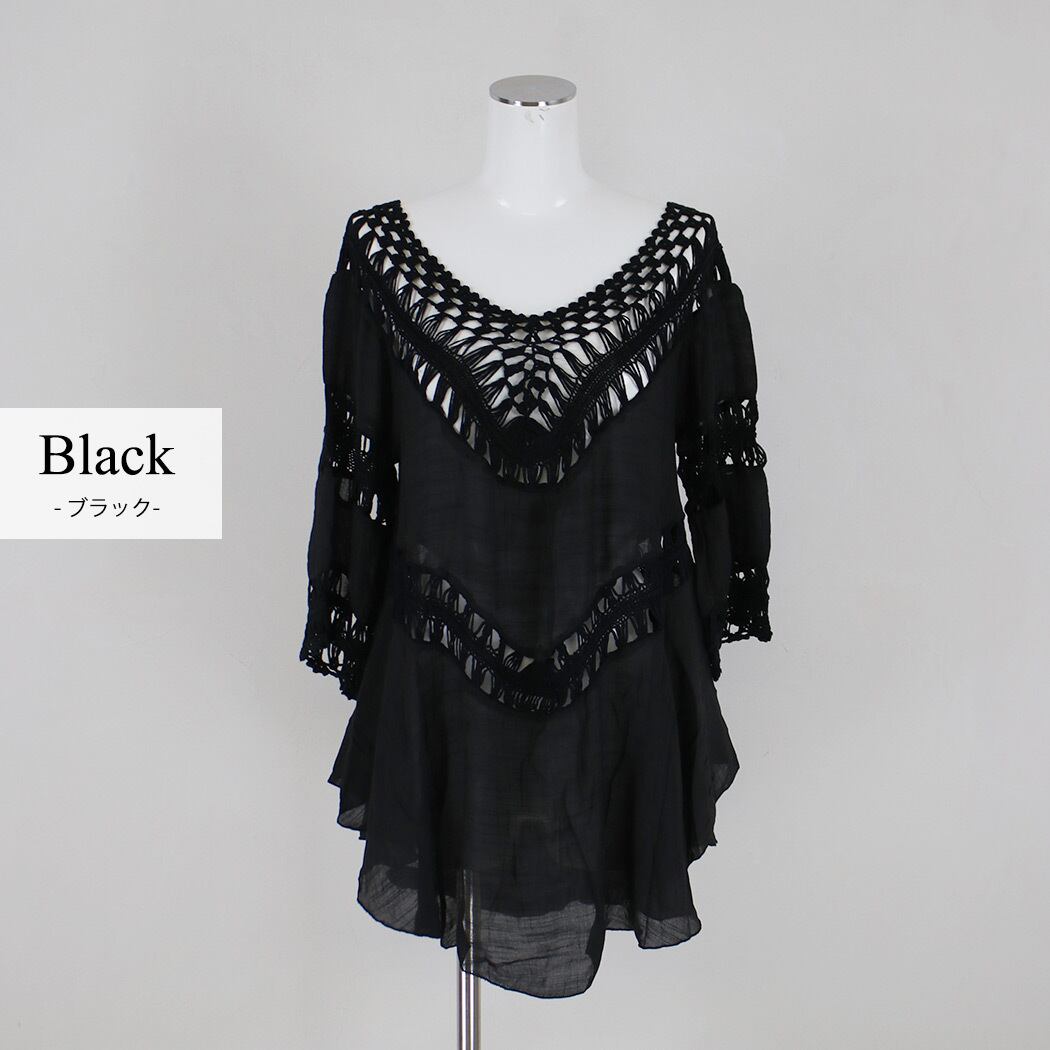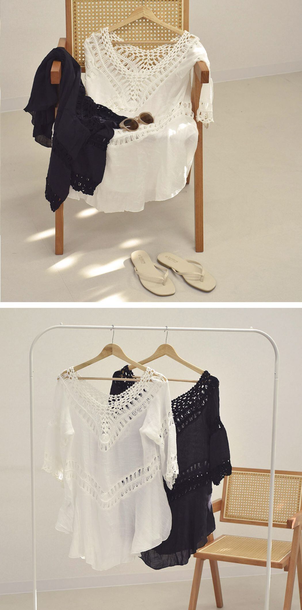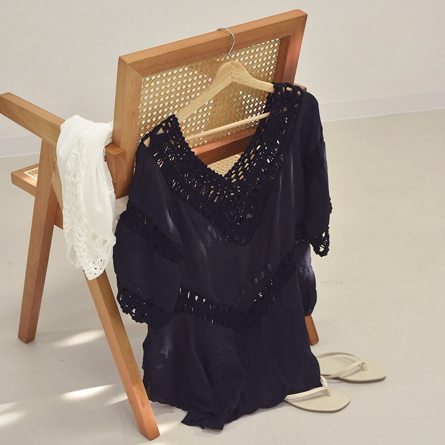 肌をほんのり透かすクロシェの編み模様がヘルシーで抜け感のある印象をプラス。