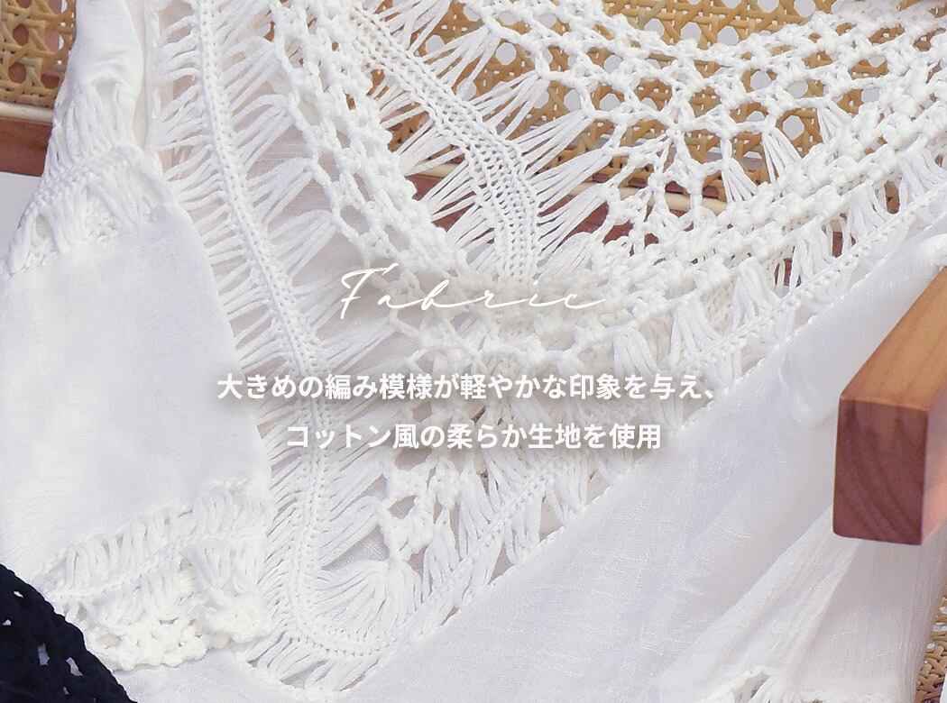 大きめの編み模様が軽やかな印象を与え、コットン風の柔らか生地を使用