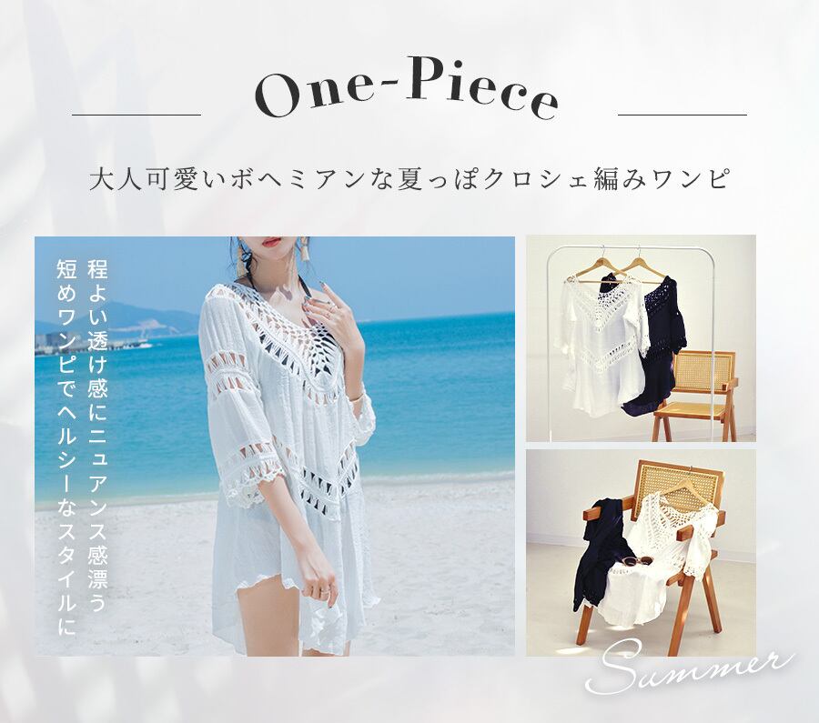 大人可愛いボヘミアンな夏っぽクロシェ編みワンピ