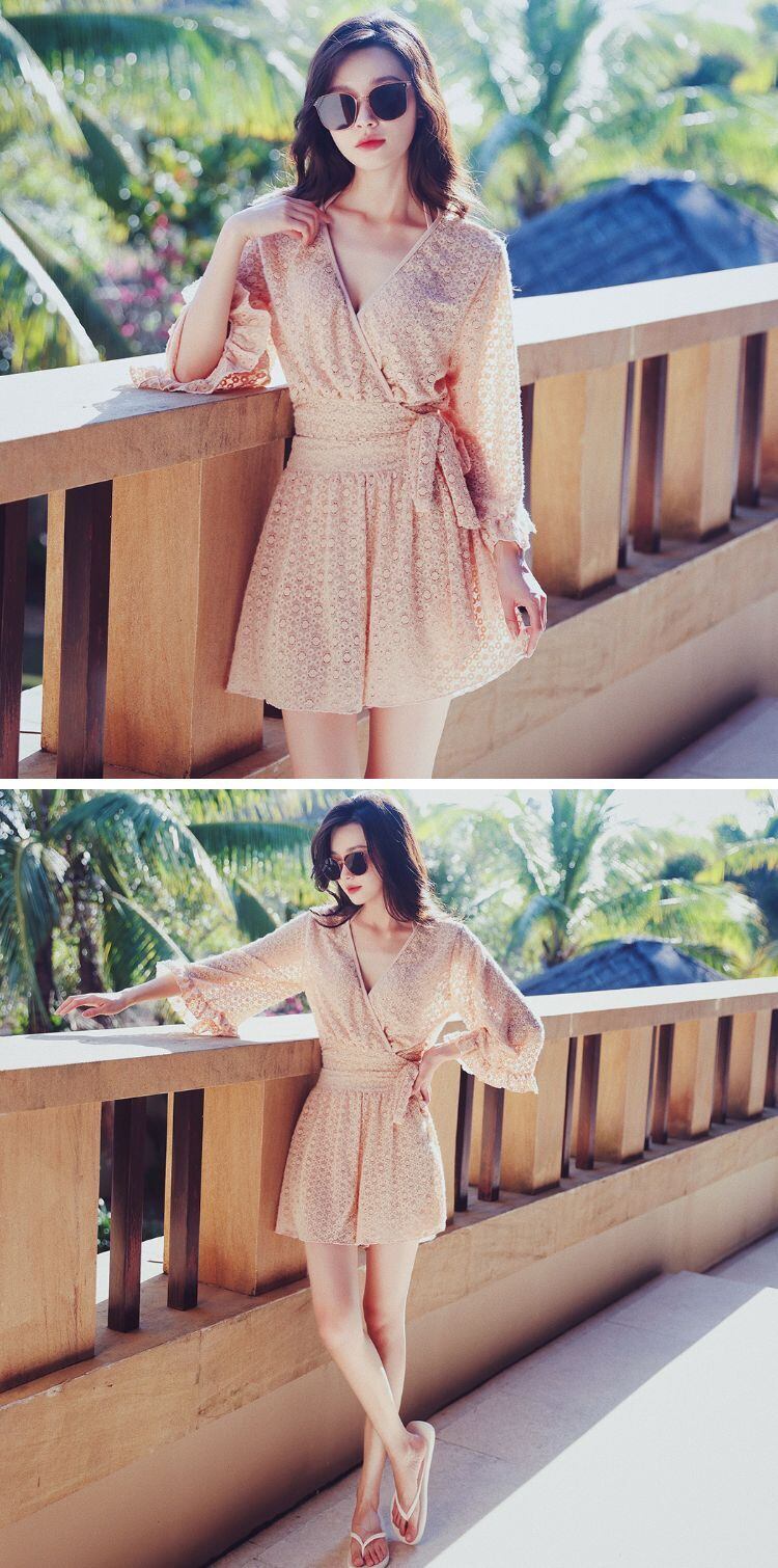 【宅配便】カットワーク刺繍セットアップ付きビキニ/hys2554