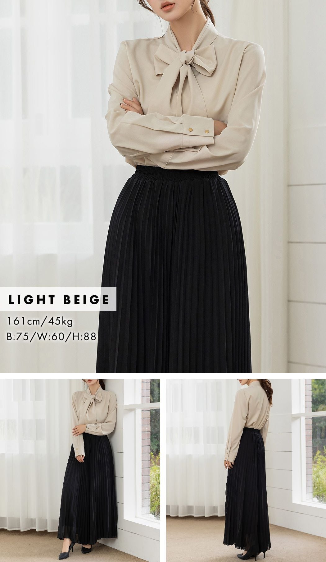 印象的な大きめリボンのボウタイも結び下ろせばグッと大人な雰囲気に。
