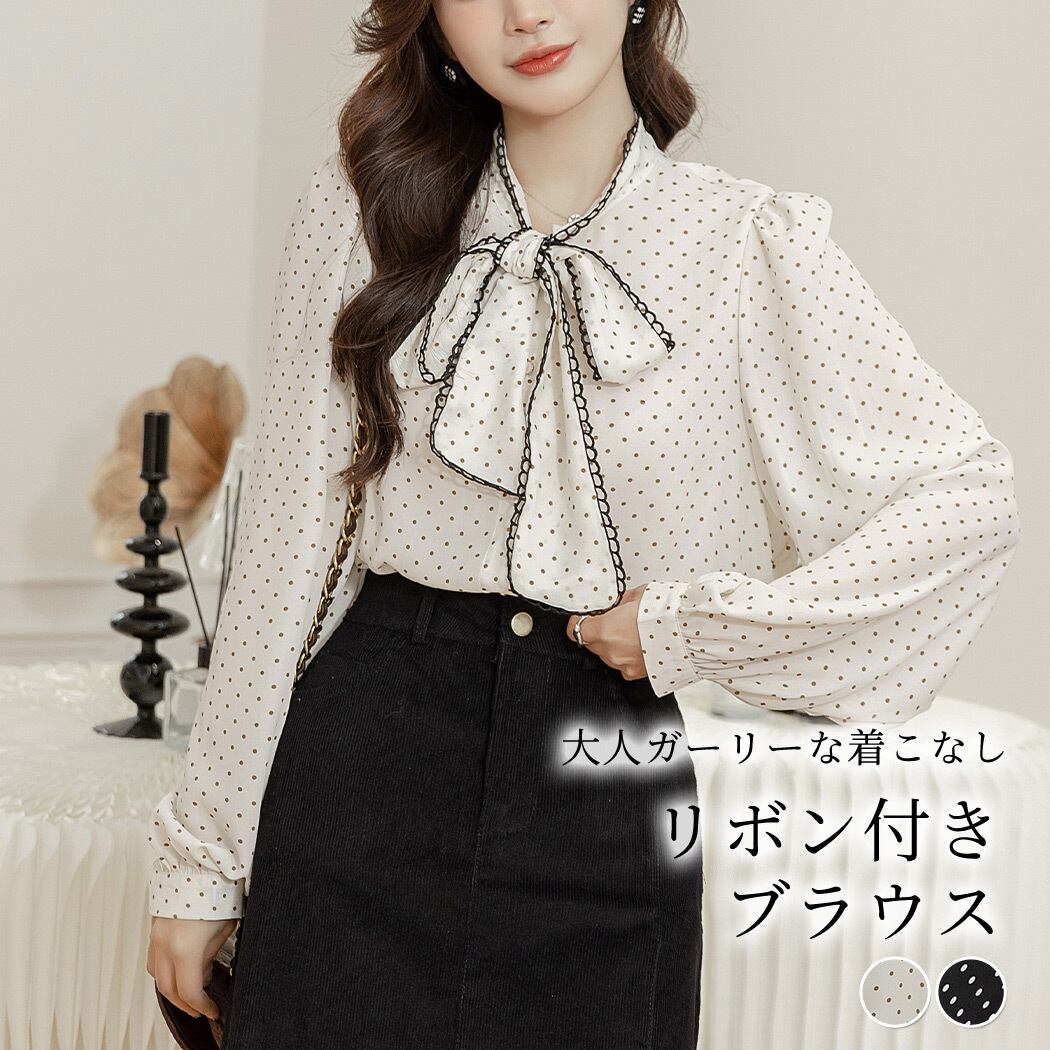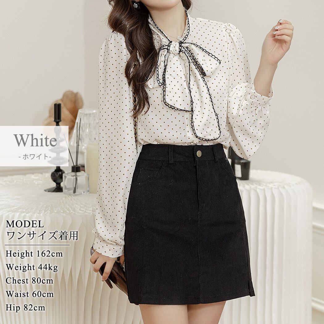【メール便】ドットボウタイリボンブラウス/tops1665