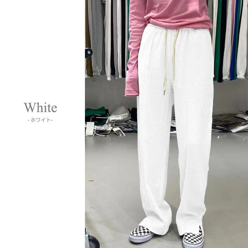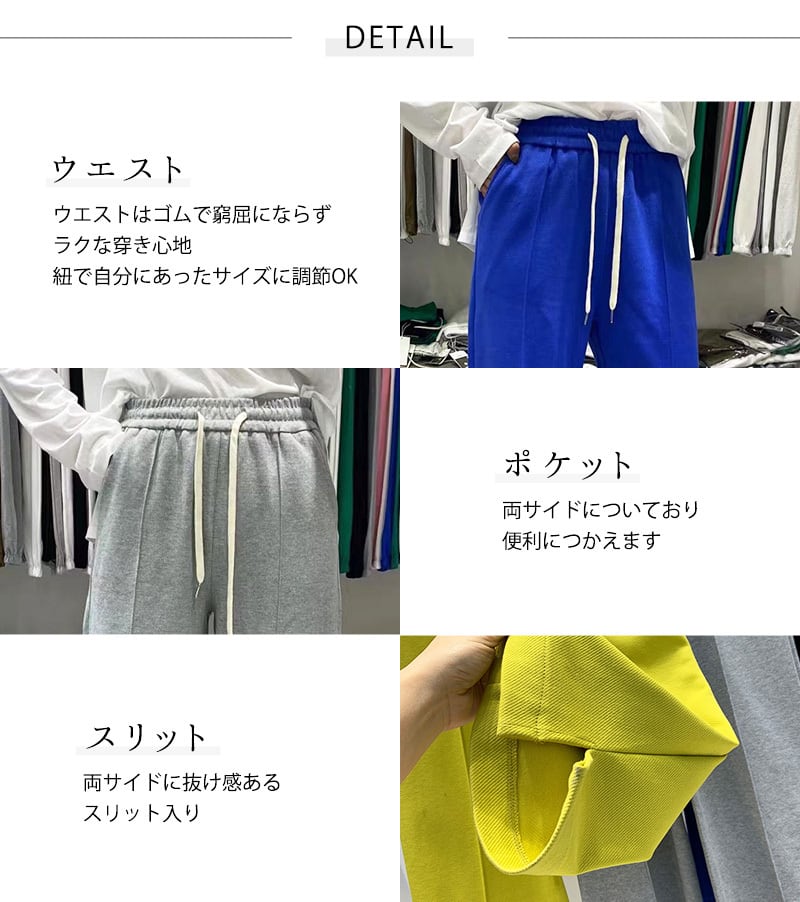 伸縮性もありリラクシーな穿き心地のスウェットタイプのストレートパンツ。