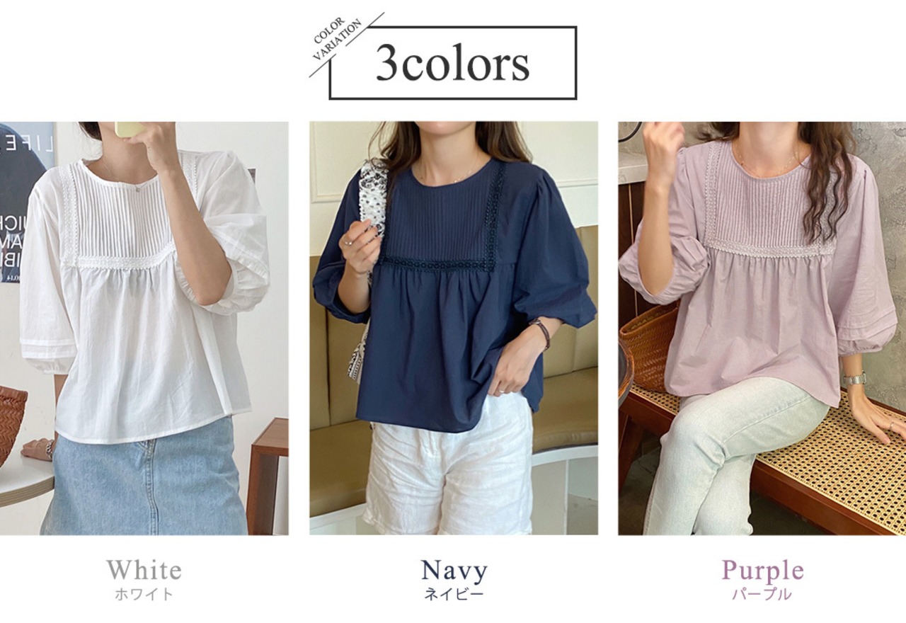 胸元のレース刺繍&プリーツ風デザインがポイント。