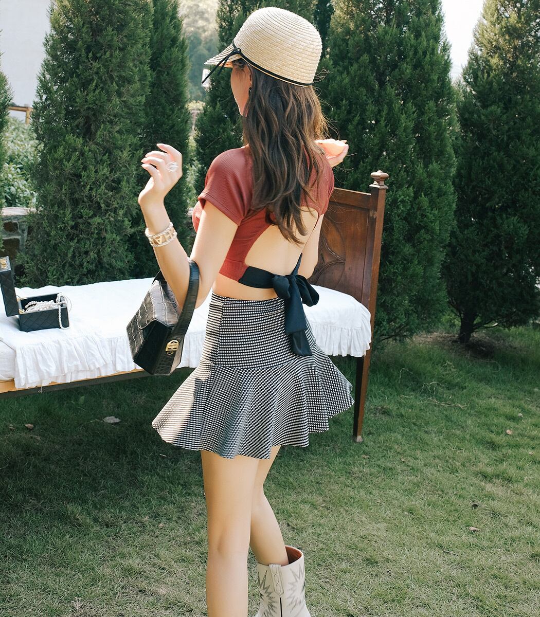 露出は控えめにオシャレに決まる半袖リブトップス!