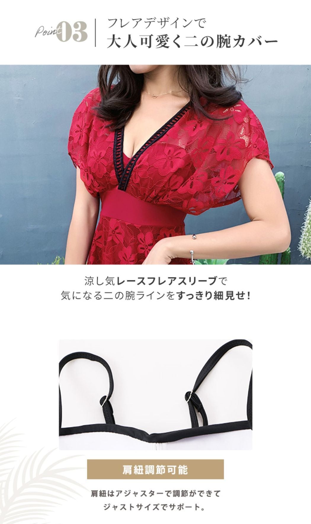 涼し気レースフレアスリーブで気になる二の腕ラインをすっきり細見せ!