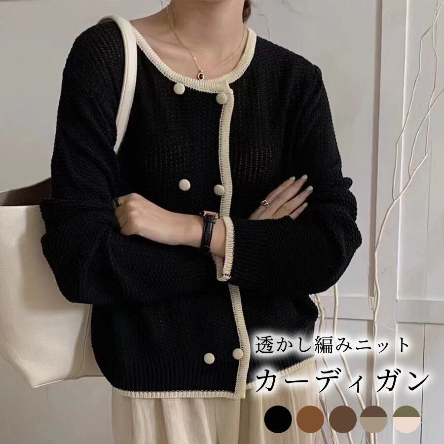 【メール便】パイピング透かし編みカーディガン/tops1766