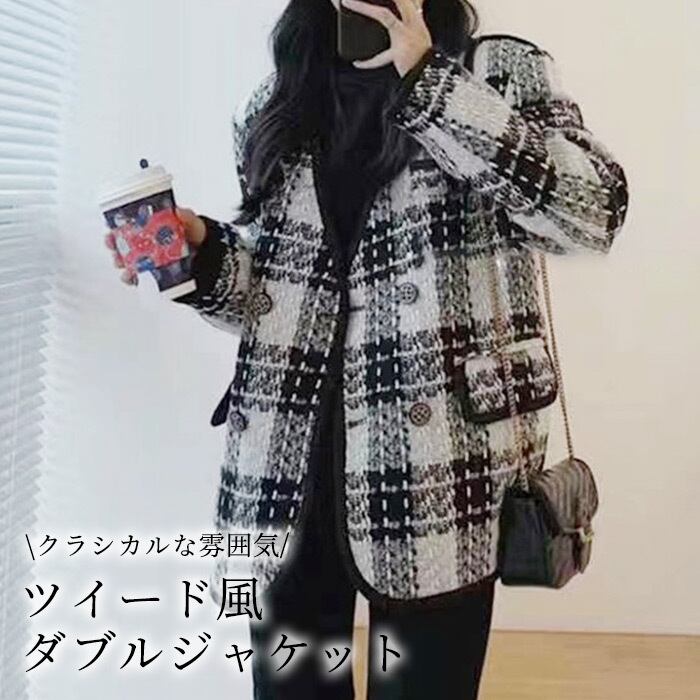 【宅配便】ツイード風ダブルジャケット/tops1826