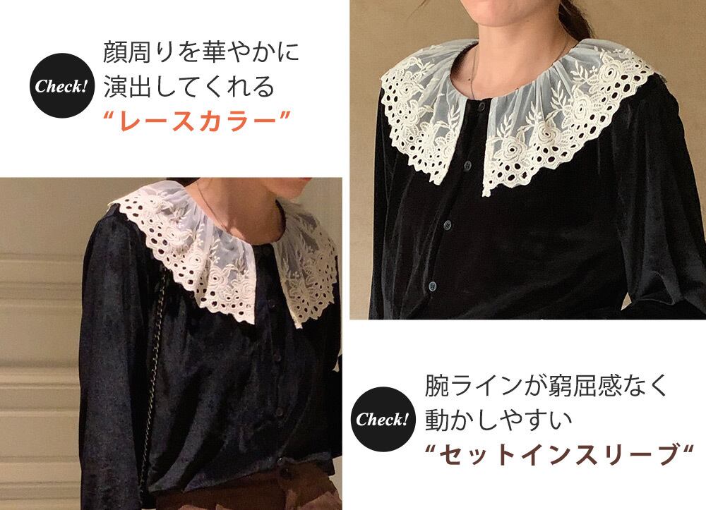 ベロアの光沢感でヴィンテージライクな着こなしに。