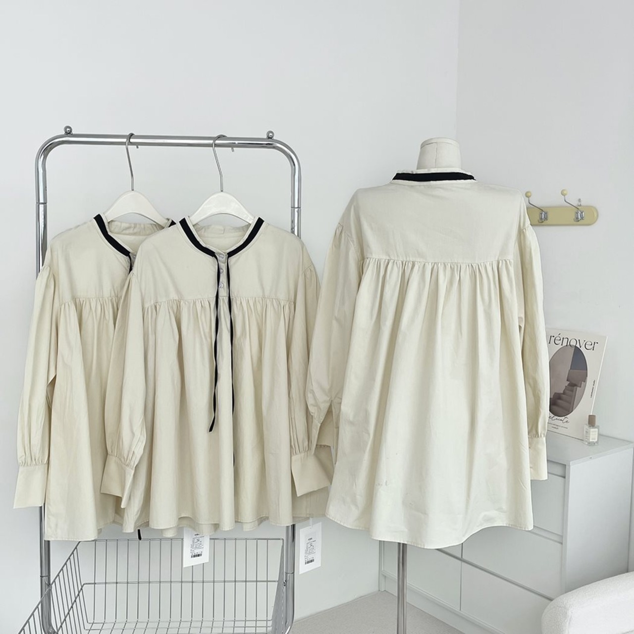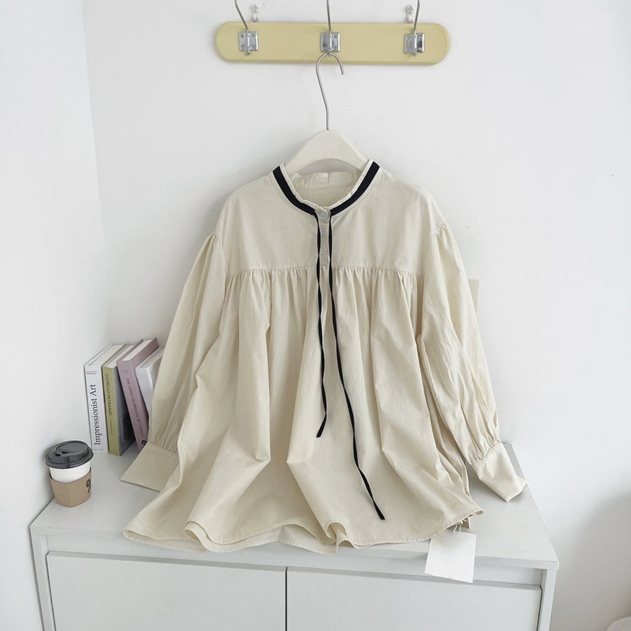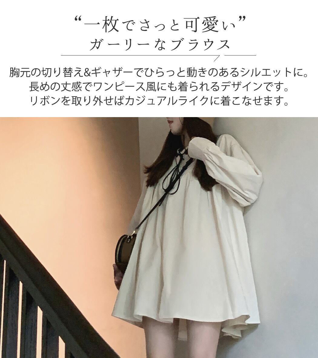 胸元の切り替え&ギャザーでひらっと動きのあるシルエットに。