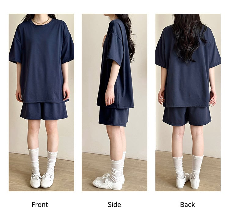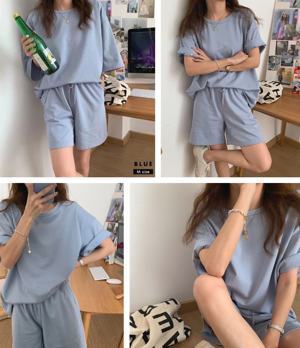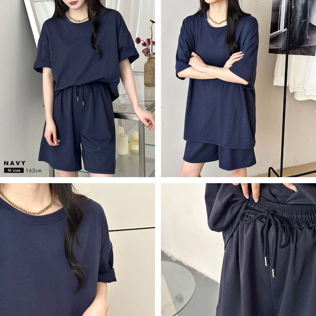 ルームウェア レディース 5分袖カットソー&ハーフパンツ 上下セット