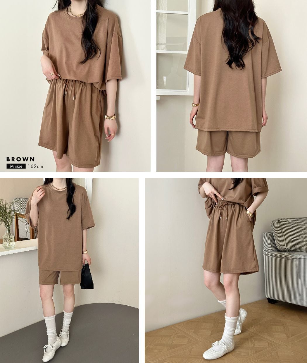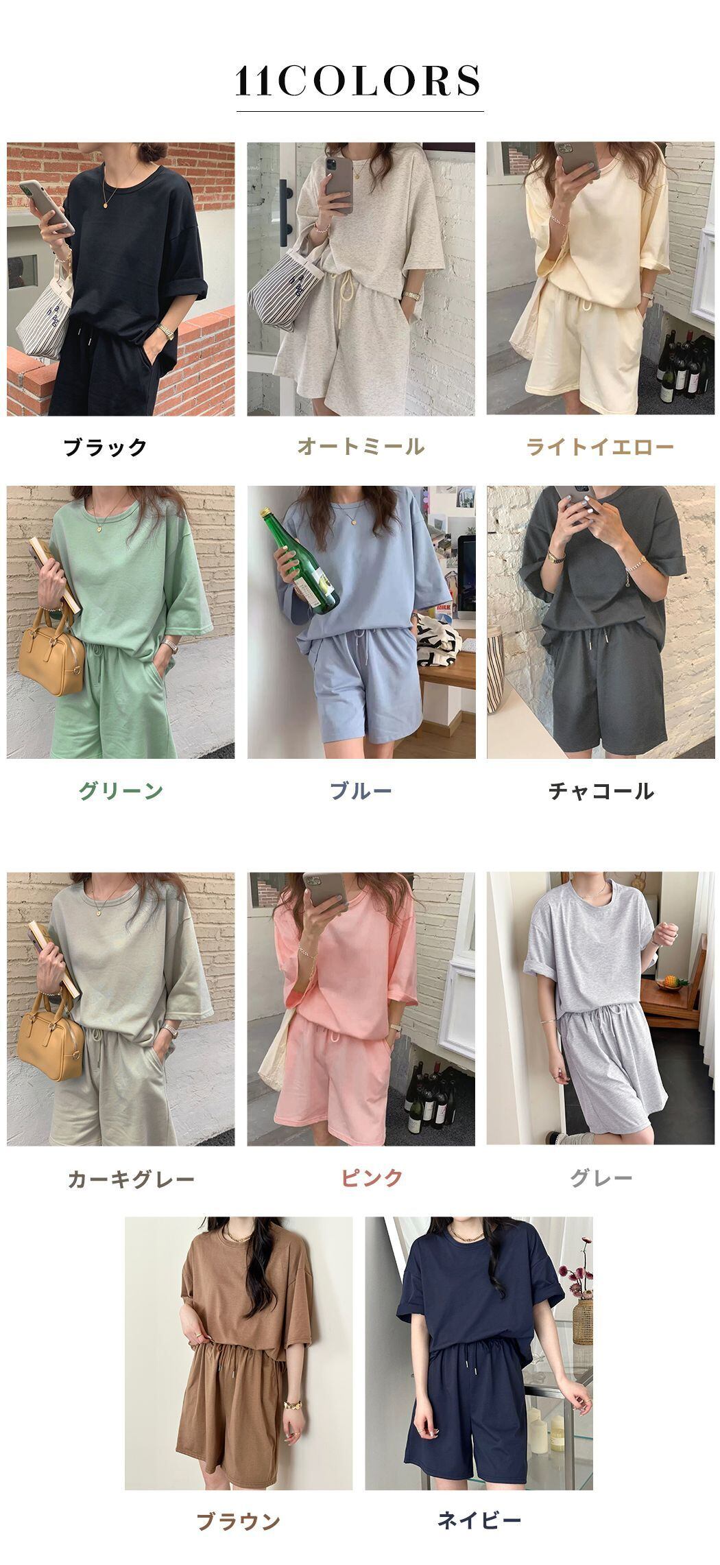コーデに迷わない半袖プルオーバー+パンツのセットアップ。