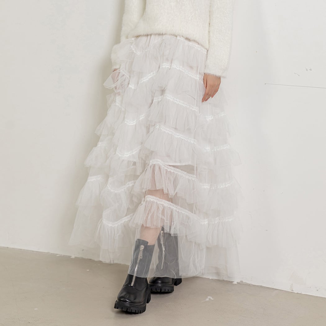 何段にも重なったフリルとボリューム感が可愛いティアードスカート。