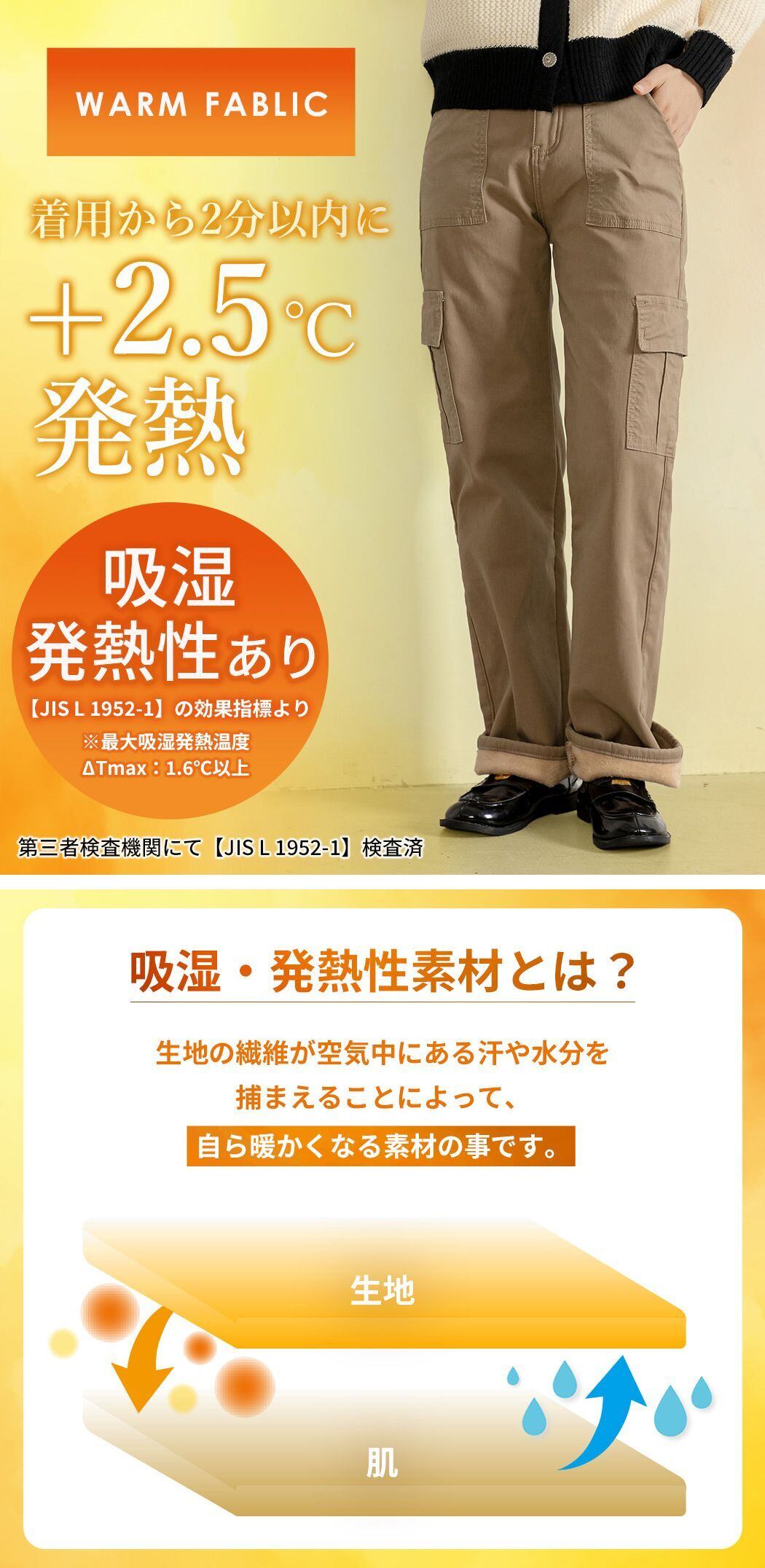 【JIS L1952-1】の効果指標より吸湿発熱性素材と確認できました♪