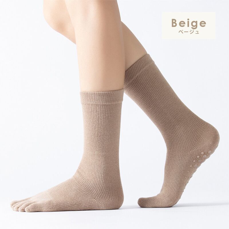 指を1本1本包み込んでくれる五本指ソックスに滑り止め付き!