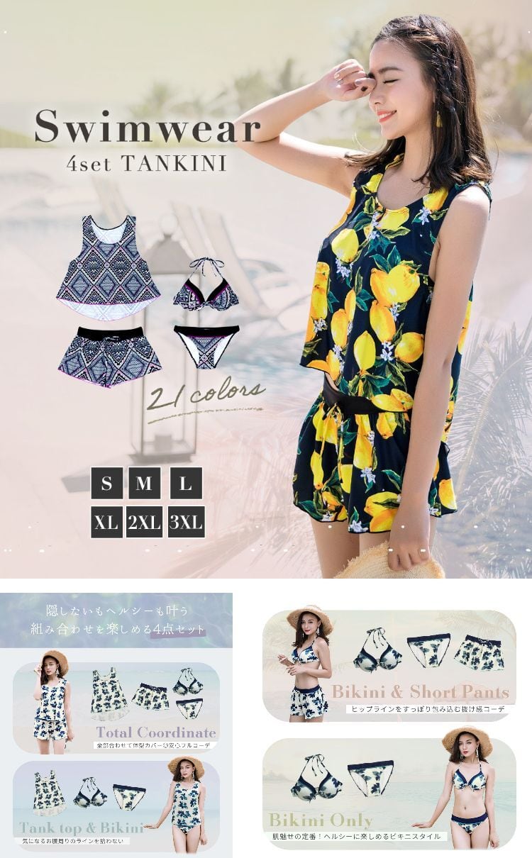 ビキニ+タンクトップ+ショートパンツ 4点セット