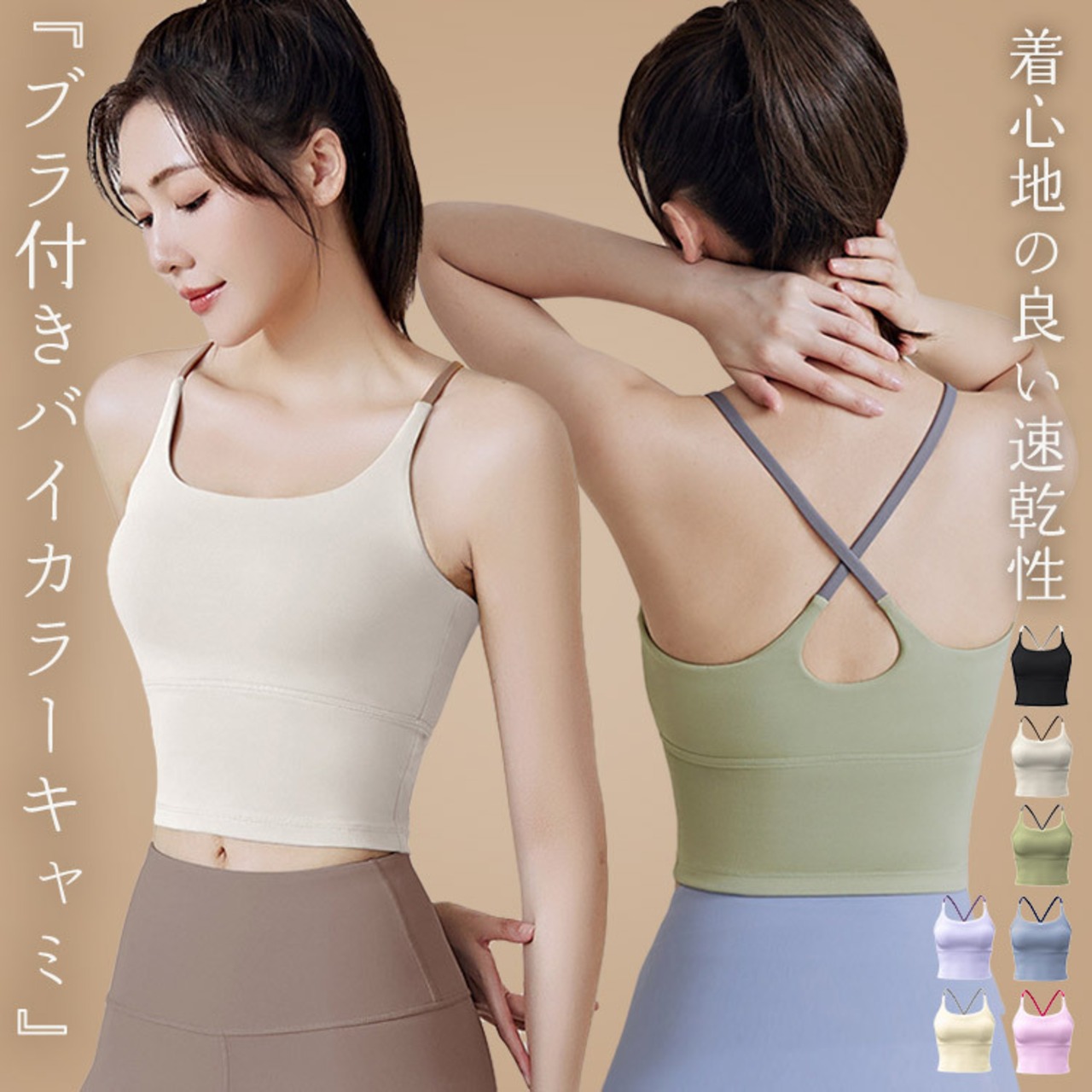 着心地の良い速乾性『ブラ付きバイカラーキャミ』