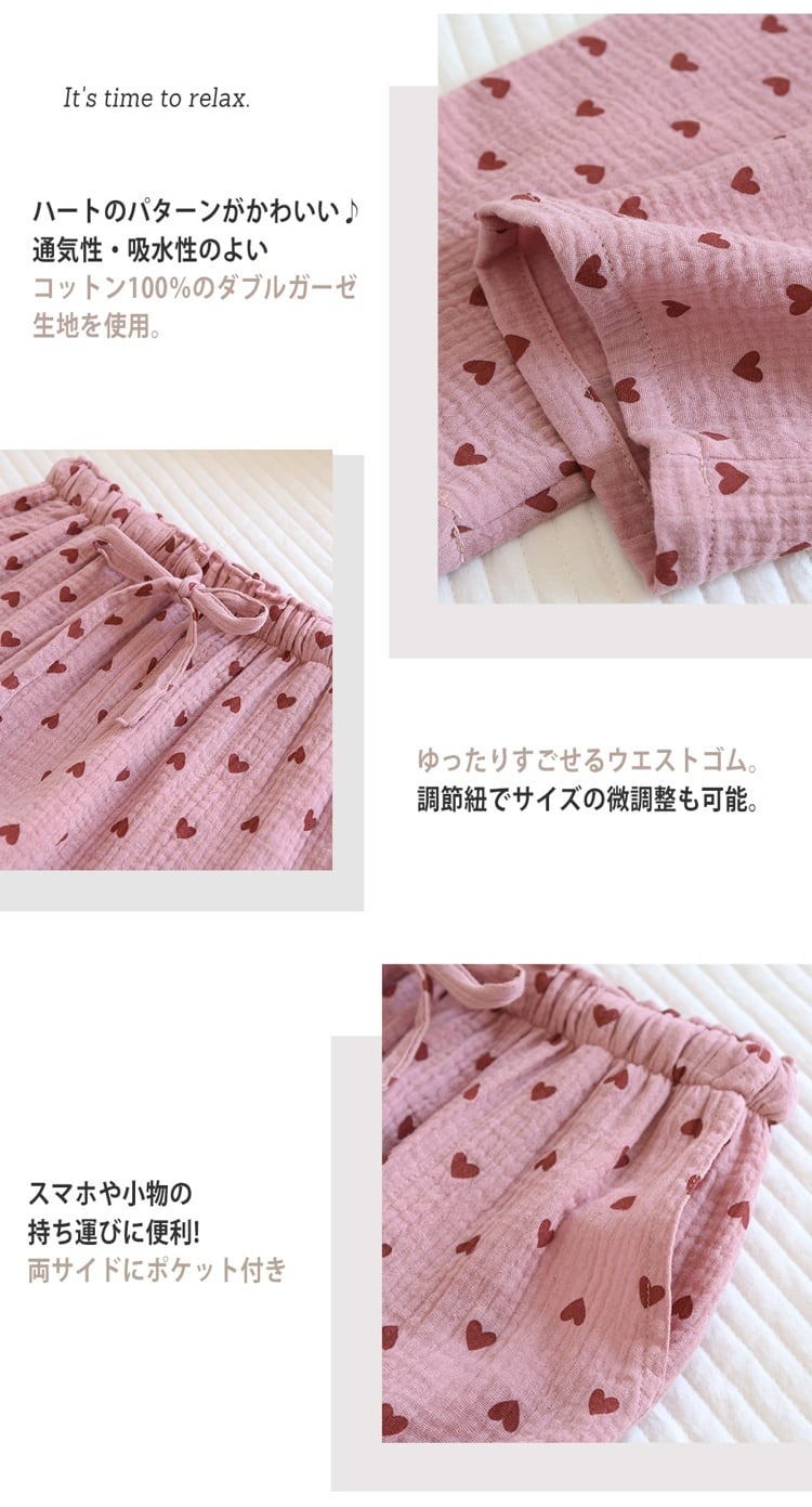 【メール便】ダブルガーゼハートルームウェア パンツ/roomwear206