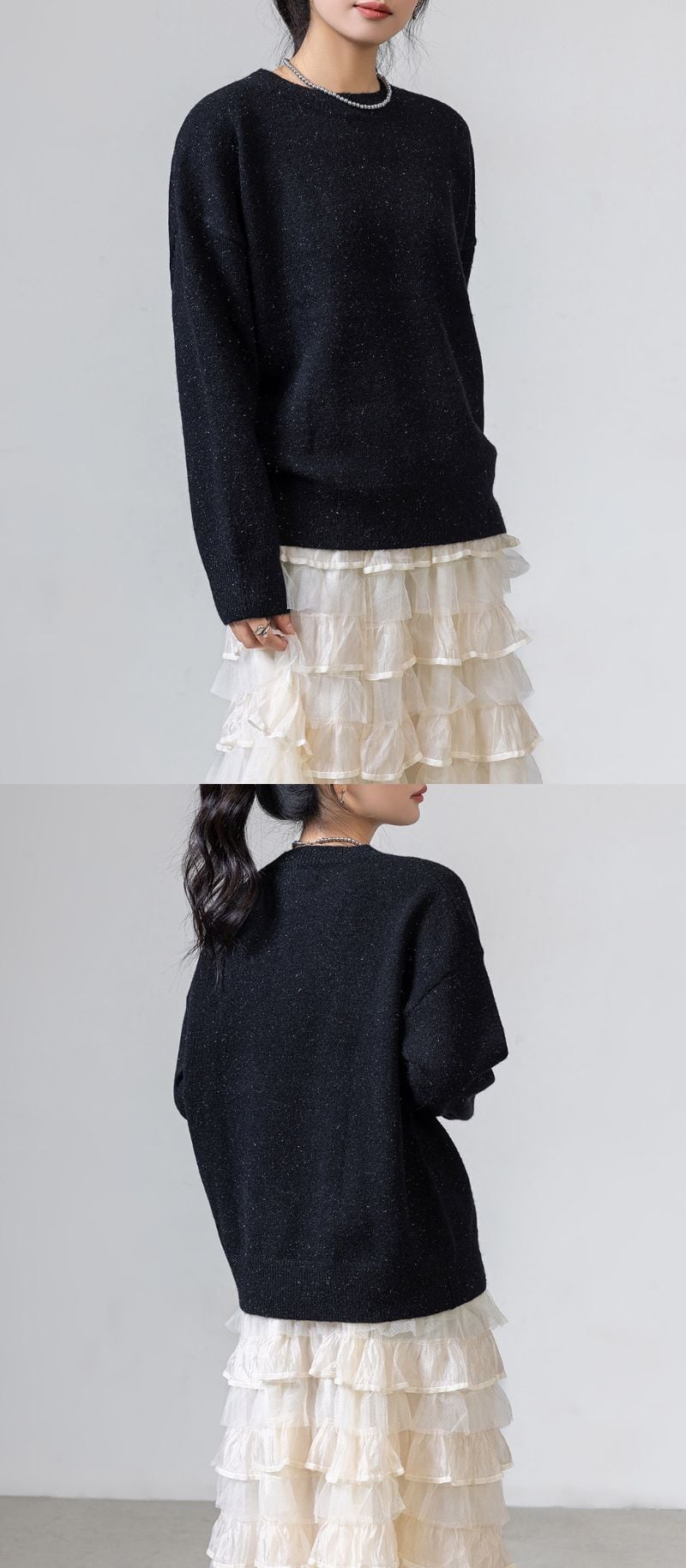 煌めくシルバーのラメ糸を使用しており今っぽく着こなせる。