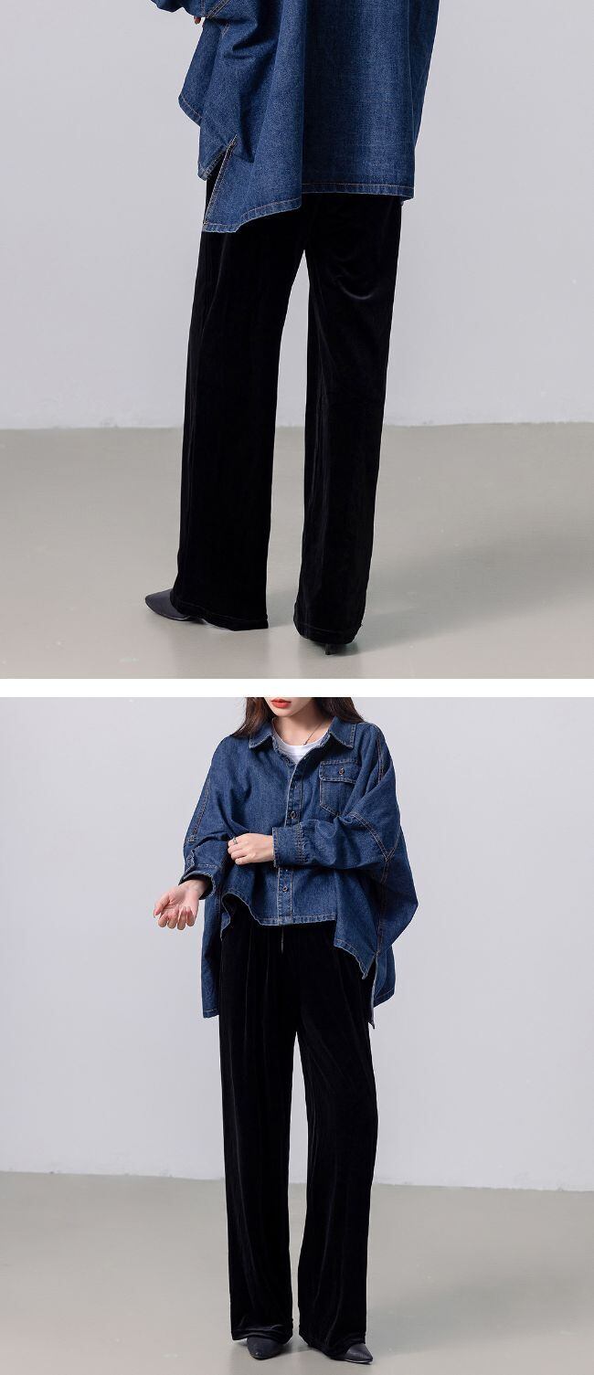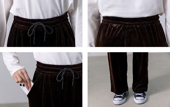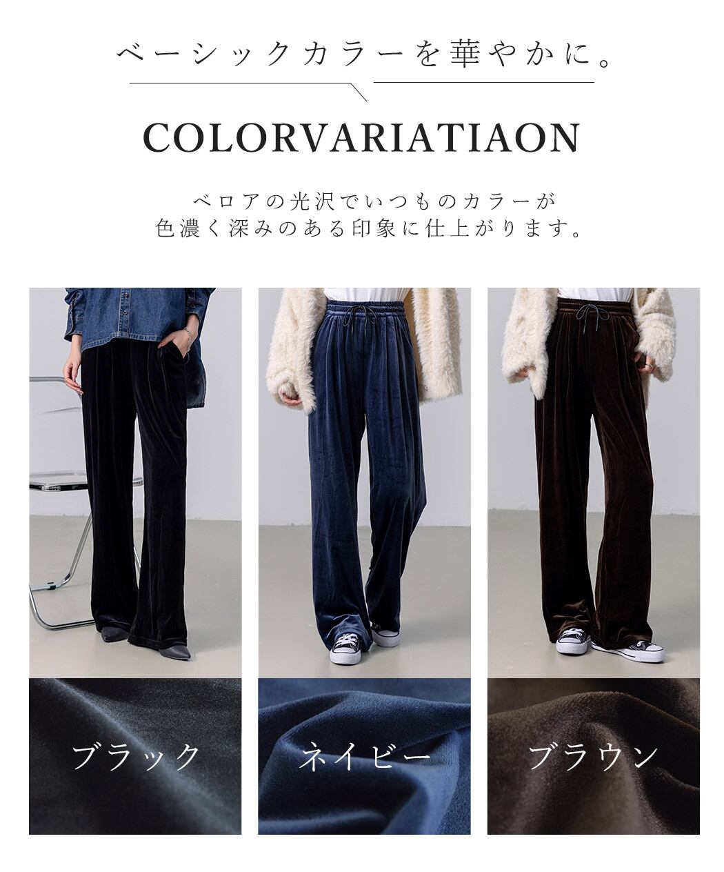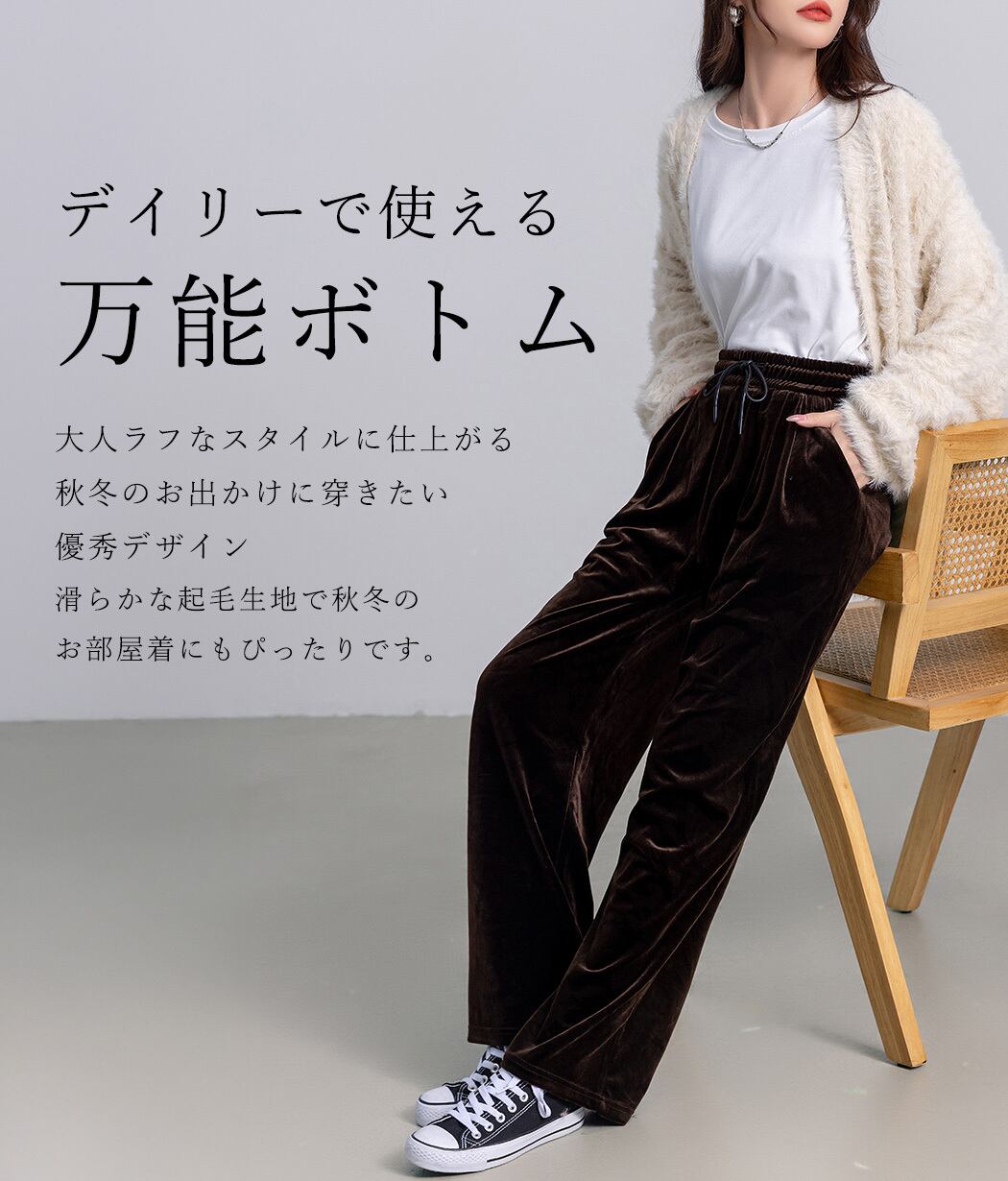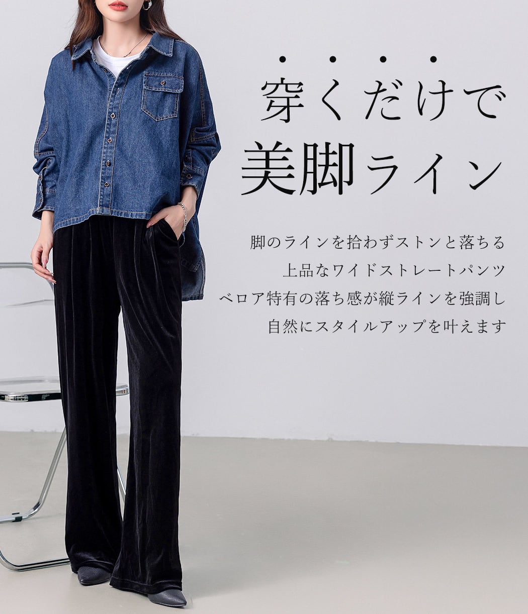 ベロア特有の落ち感が縦ラインを強調し自然にスタイルアップを叶えます
